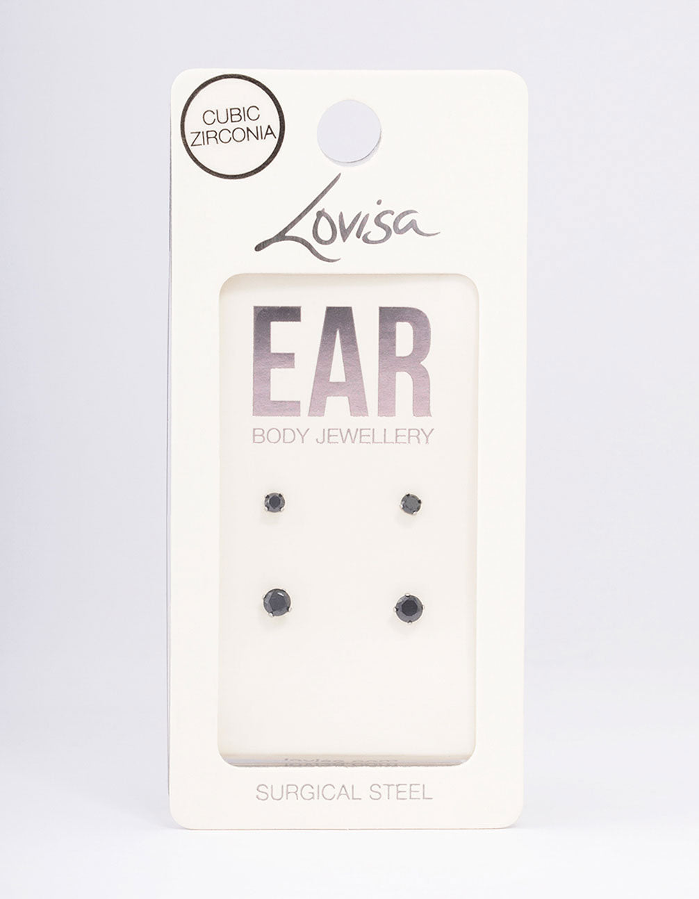 Surgical Steel Black Graduating Cubic Zirconia Stud Earring Pack