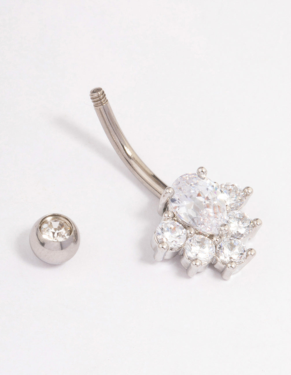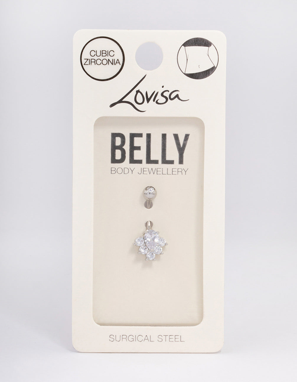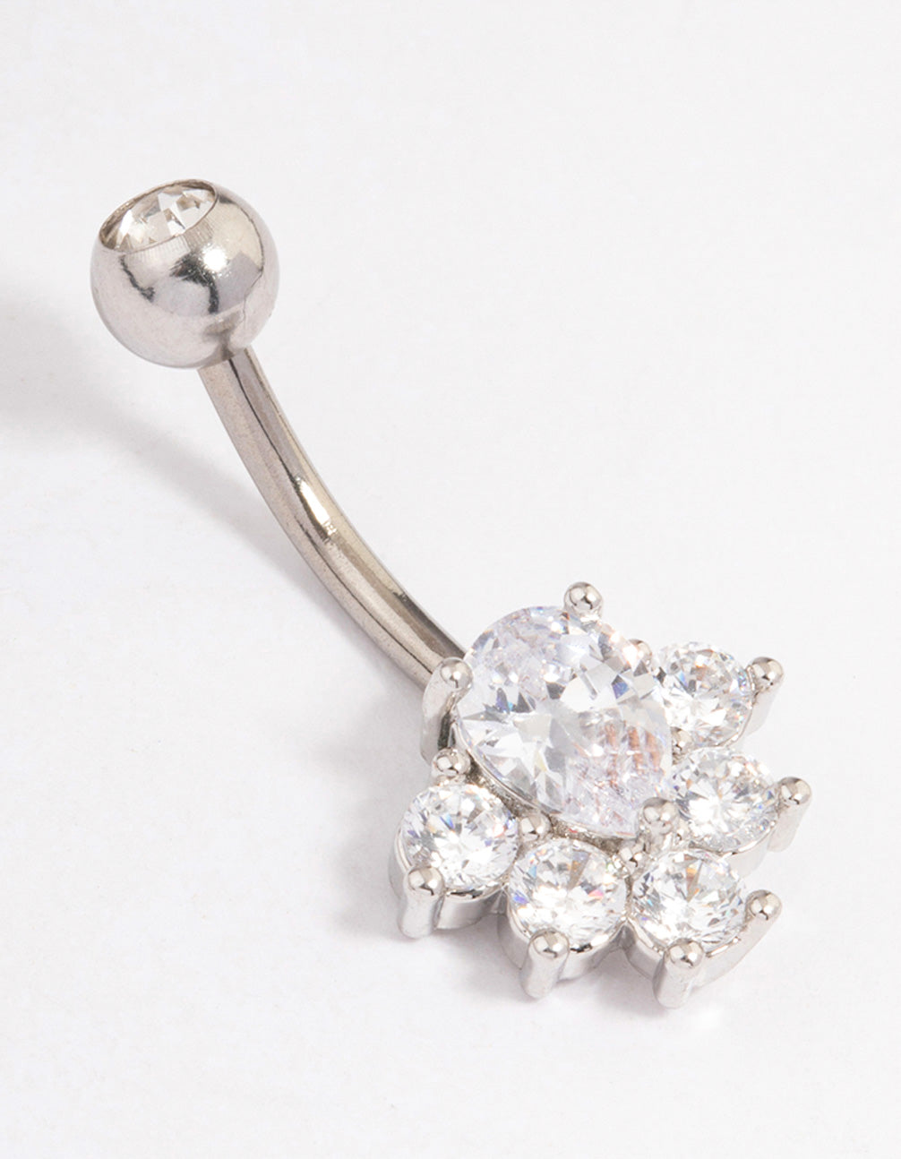 Surgical Steel Cubic Zirconia Cluster Belly Ring
