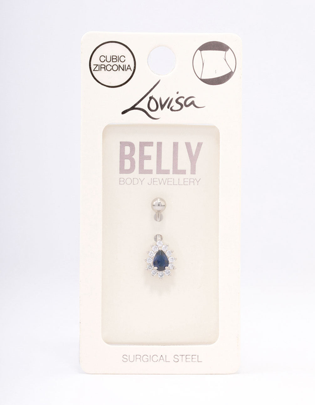 - This belly piercing features a cubic zirconia, pear-shaped crystal — perfect for adding a hint of glamour to your look.