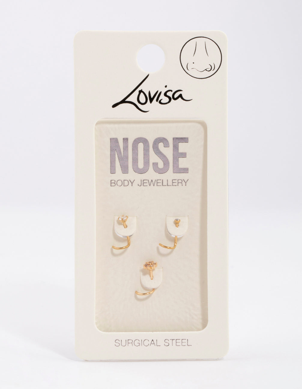 Gold Plated Surgical Steel Flower Nose Stud Pack