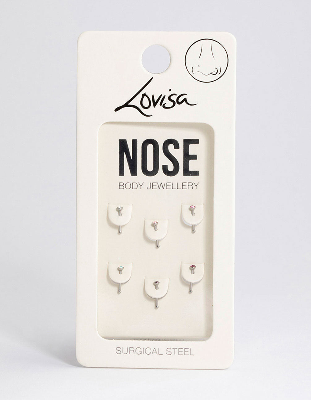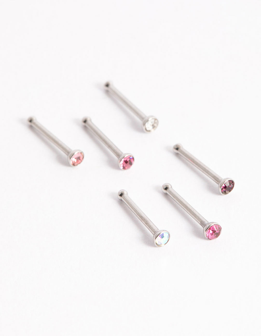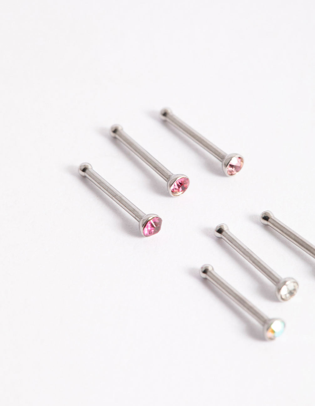 Surgical Steel Multi Cubic Zirconia Clear Nose Stud 6-Pack