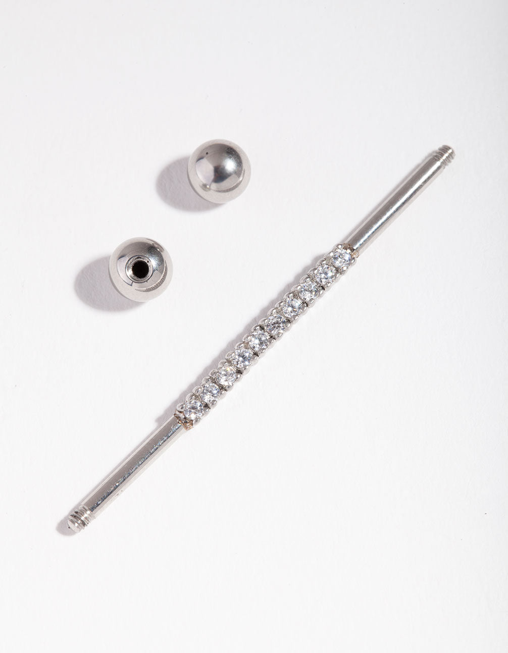 Add a cool edge to your look with this industrial bar piercing. On a silver-toned setting, this piercing is adorned with stunning cubic zirconia stones. Lovisa body jewellery is made from surgical steel, so it's safe to wear and gentle enough for daily use. Size: G14 / 1.6mm