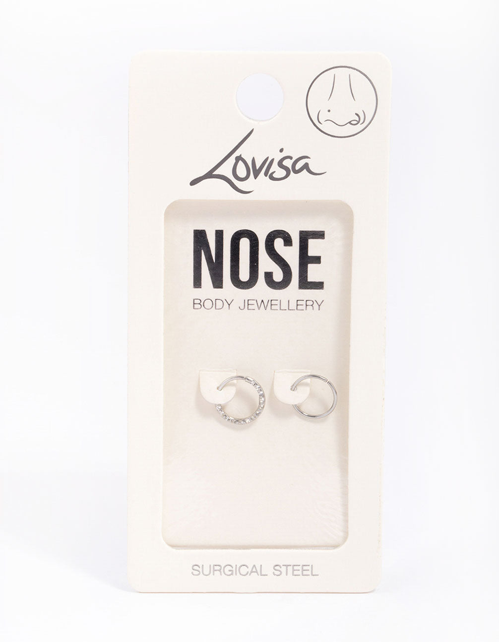 - Fill your jewellery box with piercing staples, like this Surgical Steel Cubic Zirconia Textured Nose Ring 2-Pack.