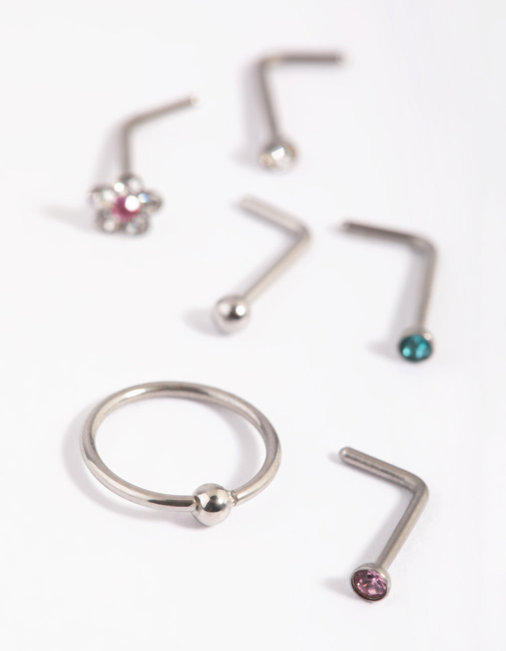 If you've got a nose for style, our body jewellery is for you! This stud earring pack features a variety of designs, so you can change your look to suit your mood. It's made with quality surgical steel. The gauge measures 20G/0.8mm.