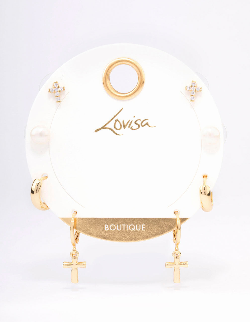 This earring pack contains four sets of gold plated earrings and feature a cross design for a timeless finish to your look.