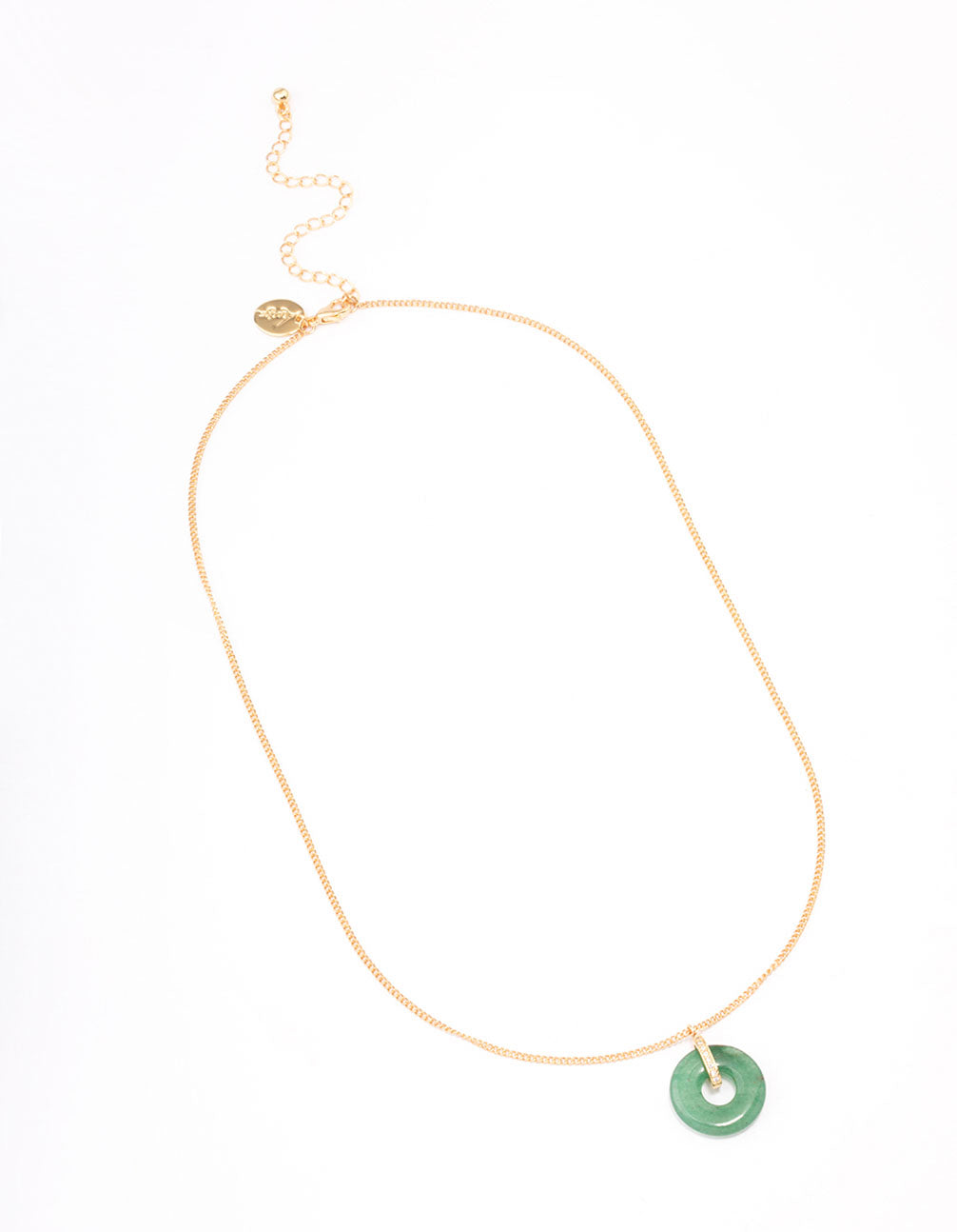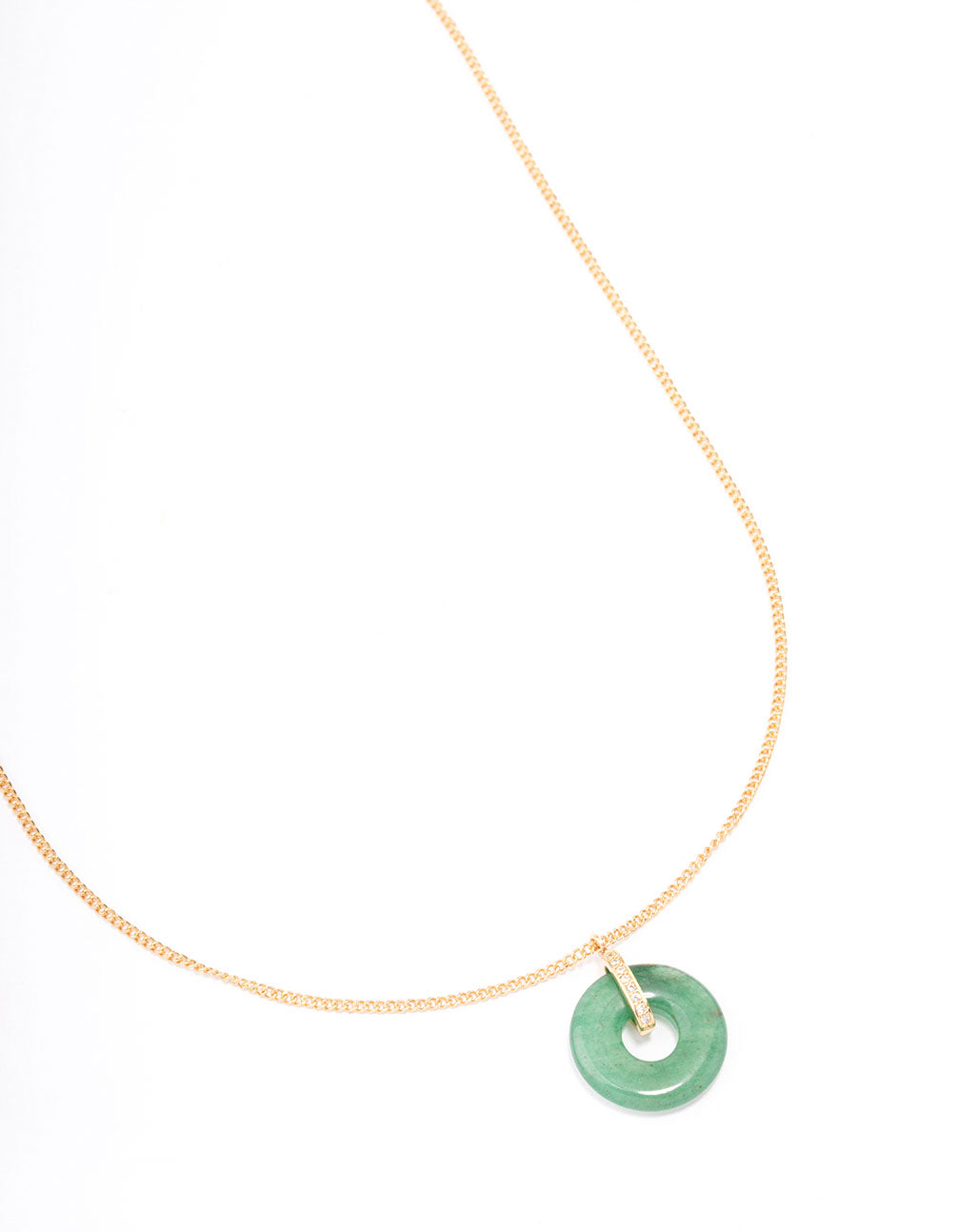 This timeless necklace is plated with real gold and features a semi-precious stone in a round donut shape for a modern finish.