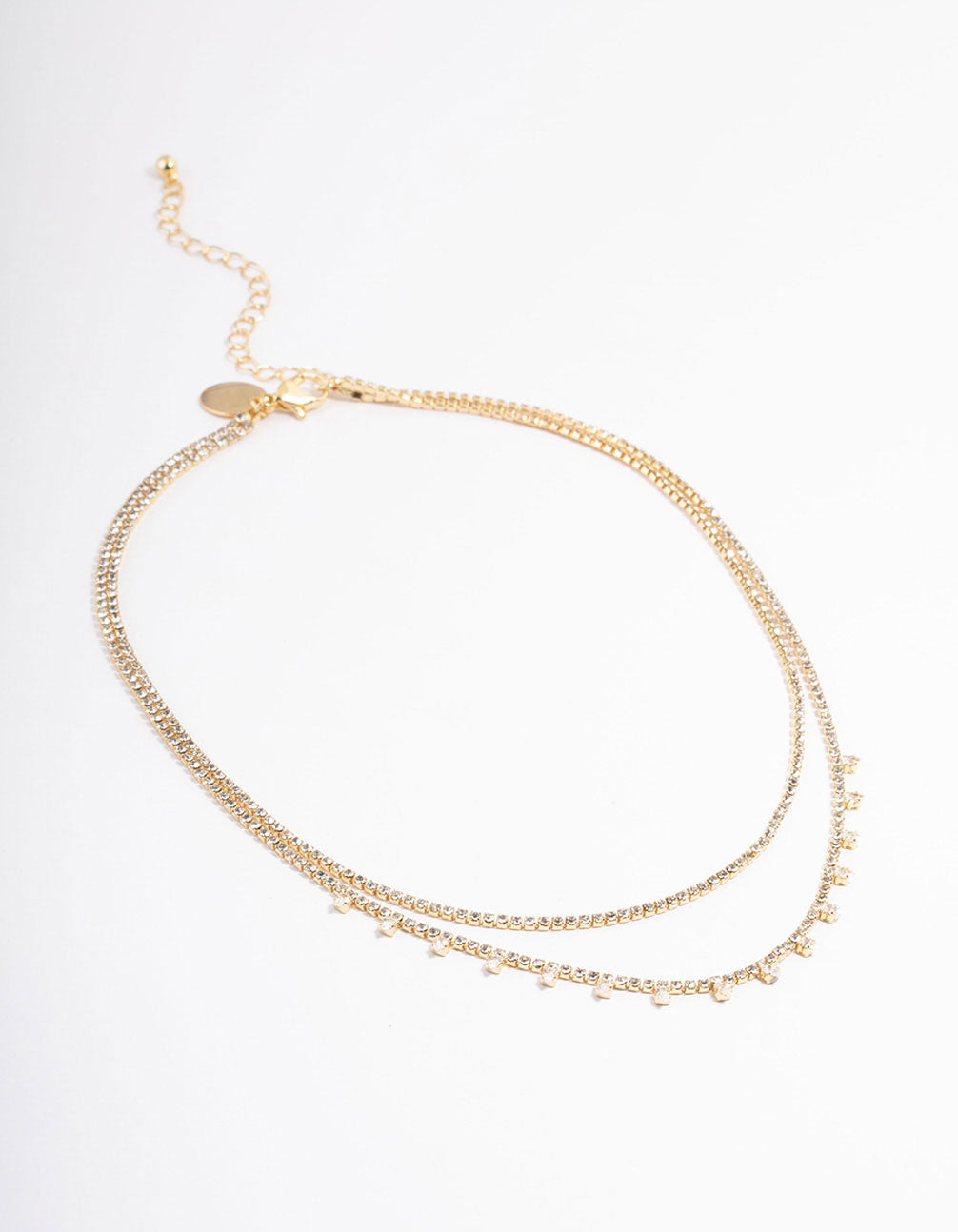 - This gold plated choker necklace features a layered design, encrusted with dazzling diamantes for a luxe finish.