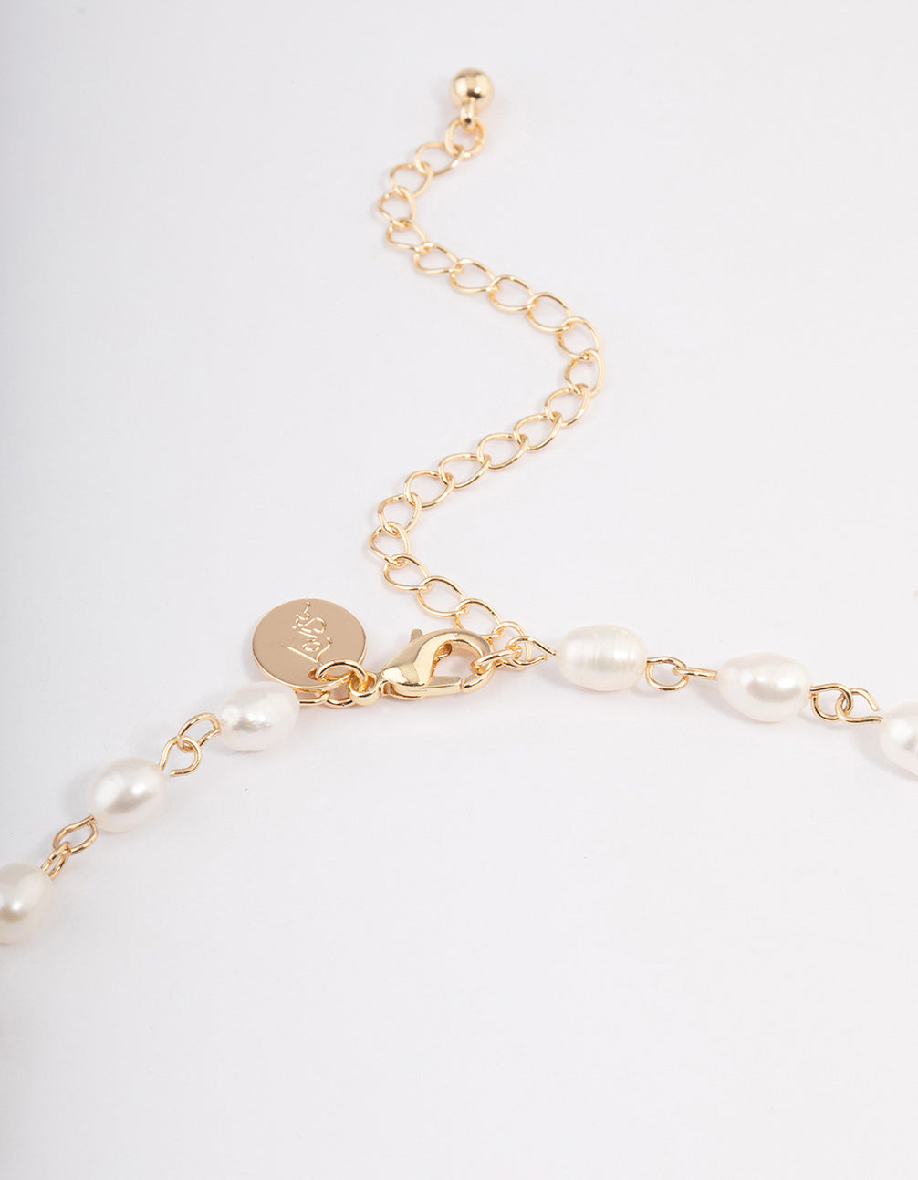 Gold Plated Freshwater Pearl Station Drop Necklace