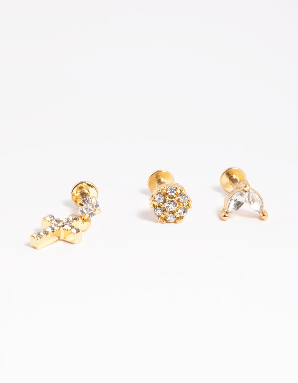 Show off your individuality with Lovisa body jewellery! Our premium body jewellery is plated with genuine gold and made with quality surgical steel to avoid skin irriation and ensure pieces are comfortable for day-to-day wear. This earring pack includes an array of earrings with flat, smooth backings which are suitable for cartilage piercings and ideal for ear stacking.
