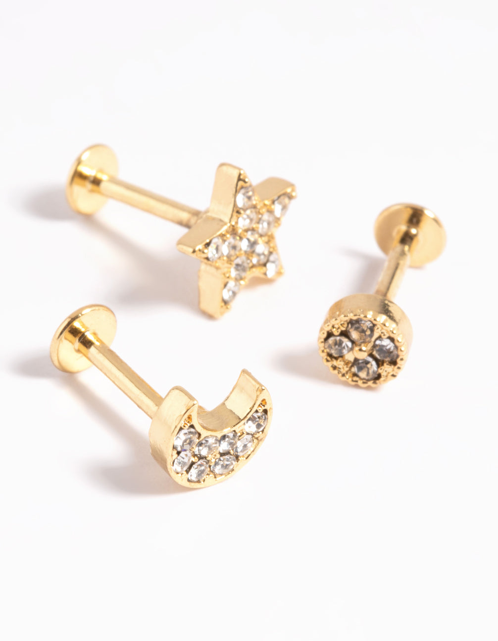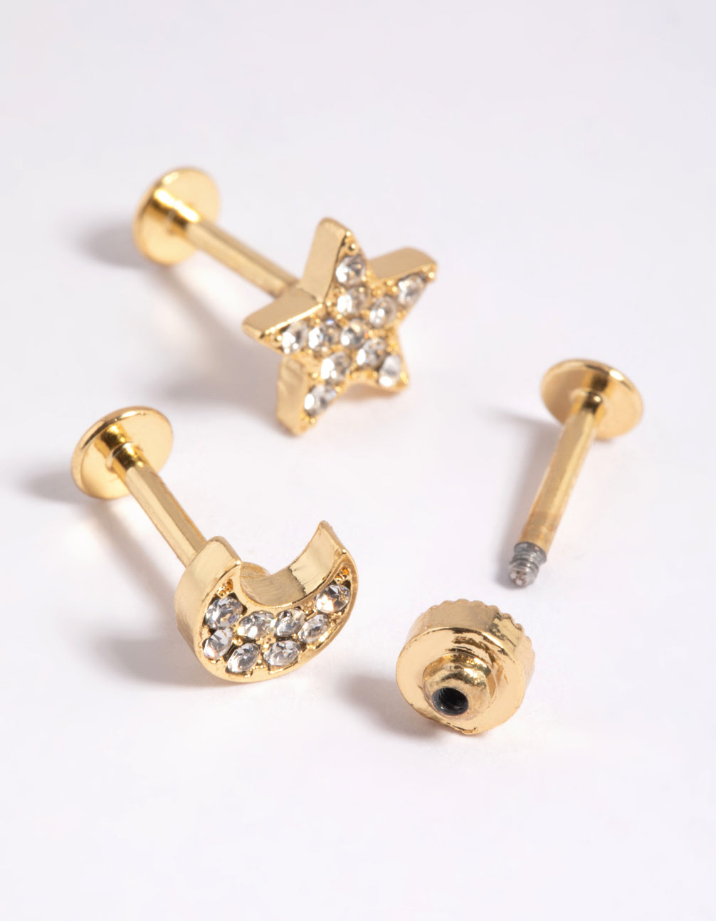 Gold Plated Surgical Steel Star & Moon Flat Back Pack