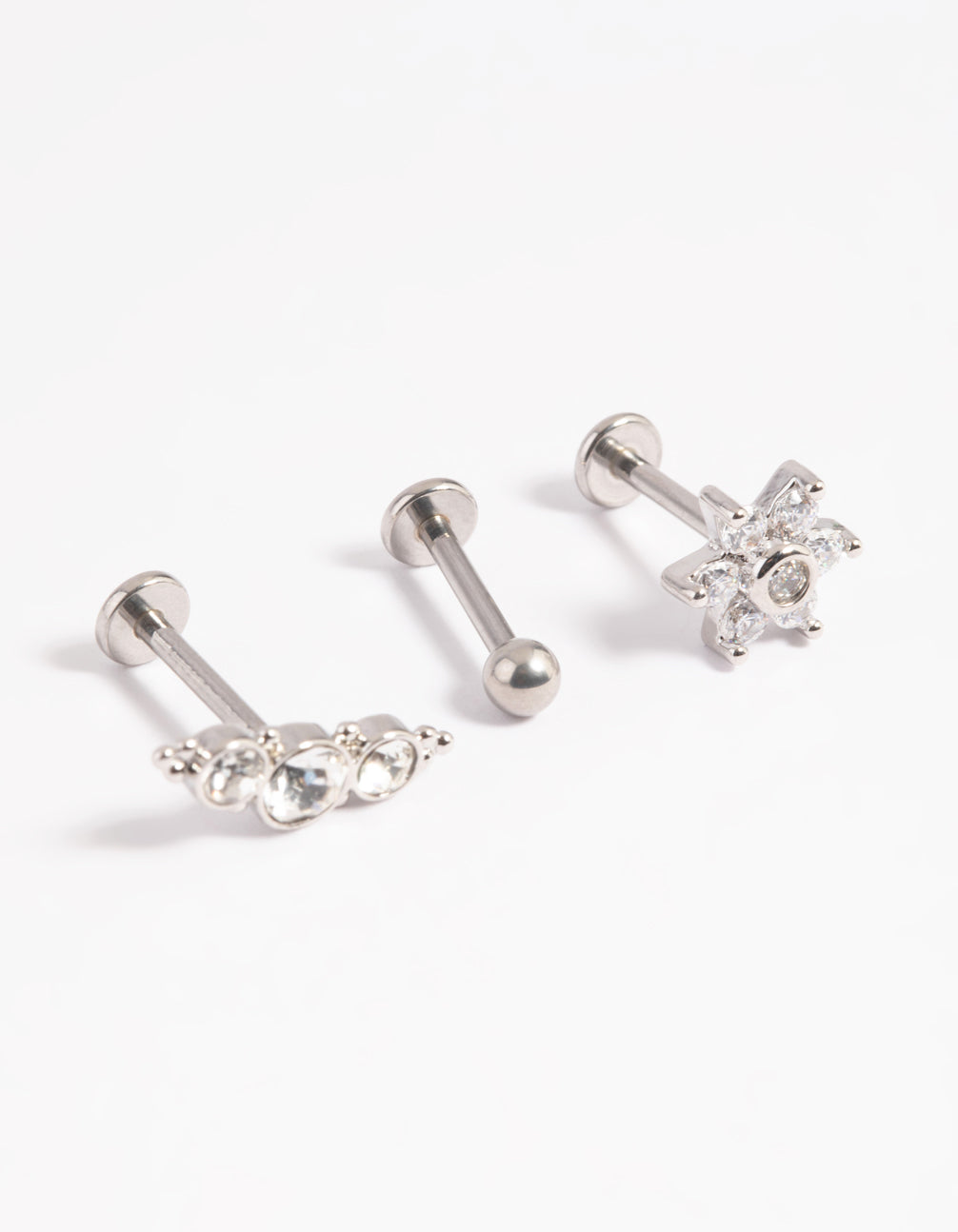Show off your individuality with Lovisa body jewellery! Our premium body jewellery is made with quality surgical steel to avoid skin irriation and ensure pieces are comfortable for day-to-day wear. This earring pack includes an array of earrings with flat, smooth backings which are suitable for cartilage piercings and ideal for ear stacking.