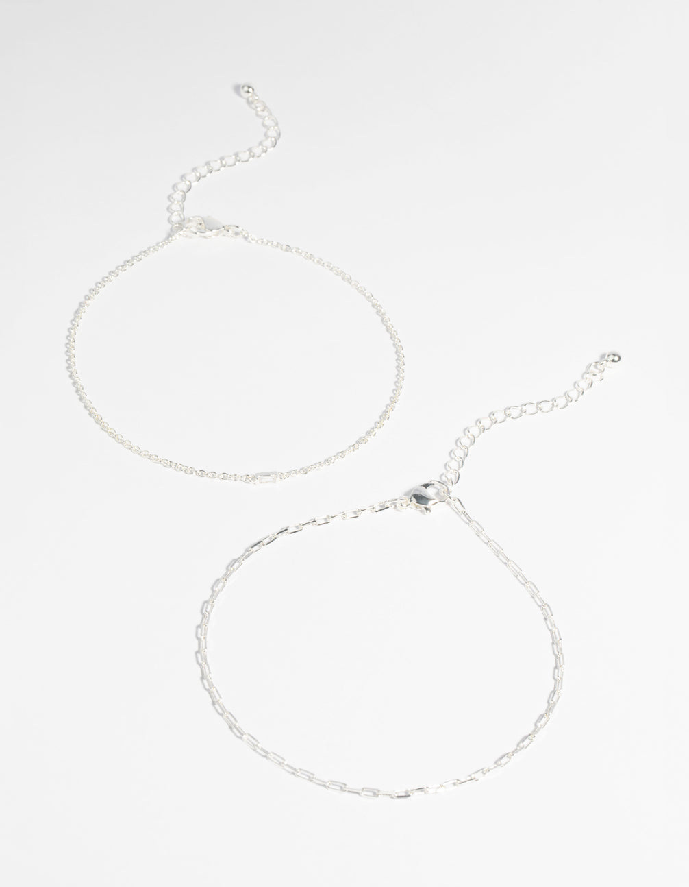 Silver Plated Fine Chain Anklet Set