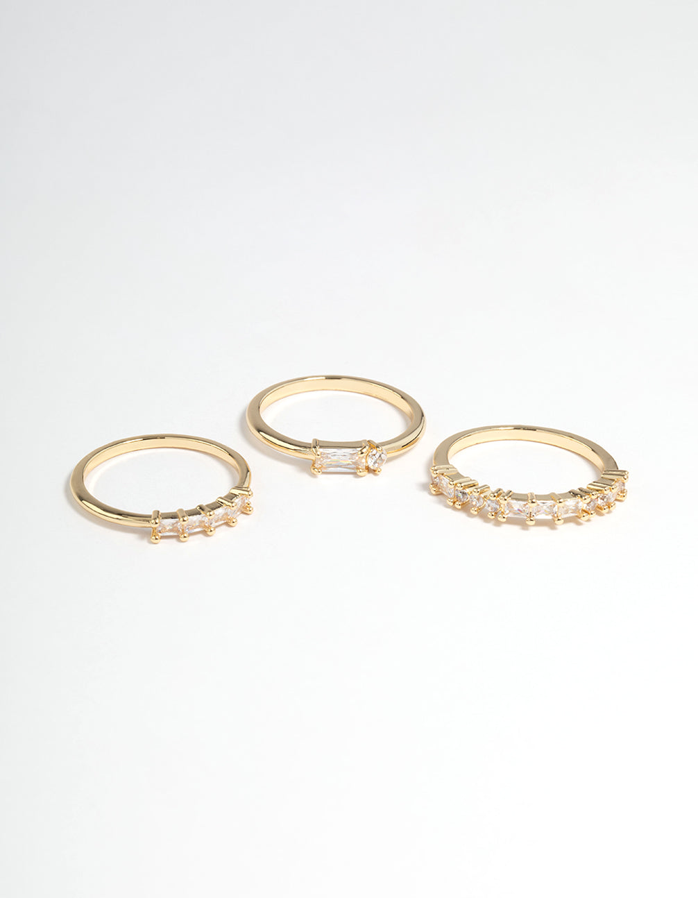 Gold Plated Cubic Zirconia Baguette Stacker Rings Pack