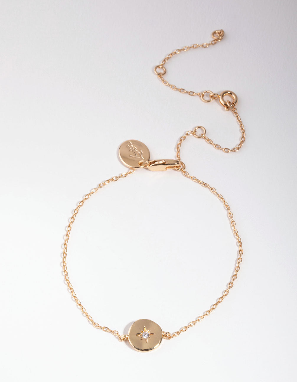 Add a chic finishing touch to your look with a fashion-forward bracelet! This piece is plated with genuine gold and boasts disc detail at its centre embossed with a starburst design. Style with your favourite gold jewellery for maximum impact.