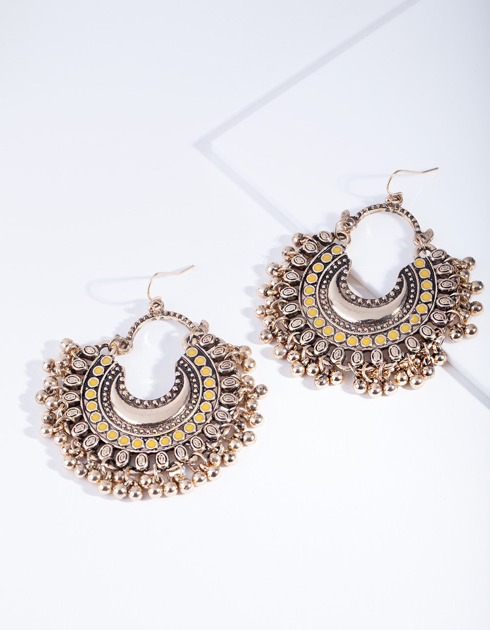 Lovisa's antique style accessories are a stunning nod to traditional pieces with a modern twist! These earrings feature an antique gold toned setting with yellow beads. Style with antique-look layered necklaces and scattered rings for a free-spirited look.