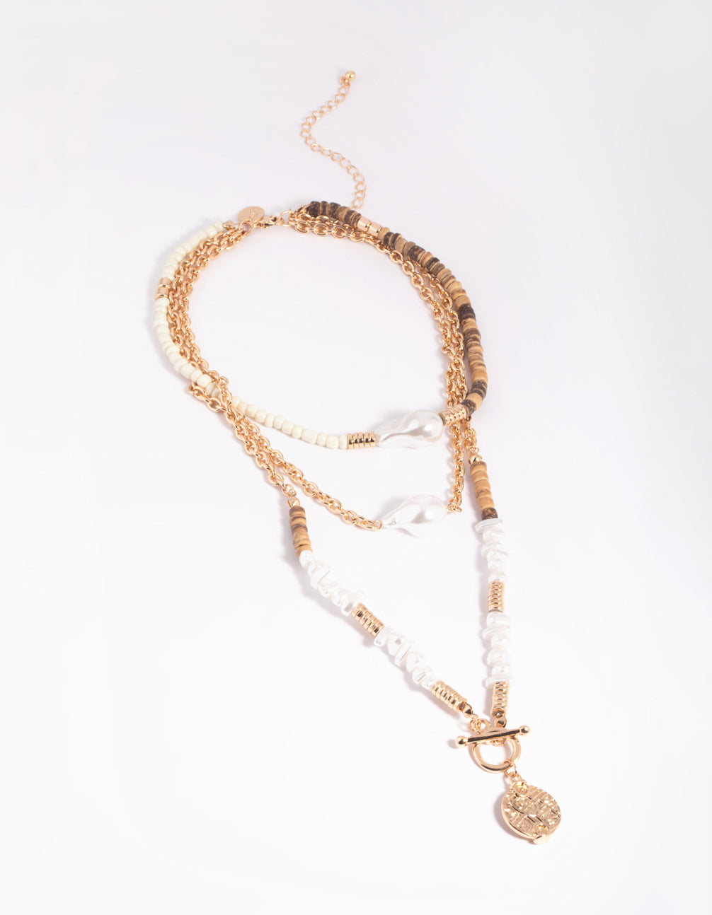 Opt for an organic look with soft beige, brown, tan and sand colour palettes. This lovely necklace will add earthy tones to your ensemble. Wear it with neutral colours for a look that is both beachy and sophisticated.