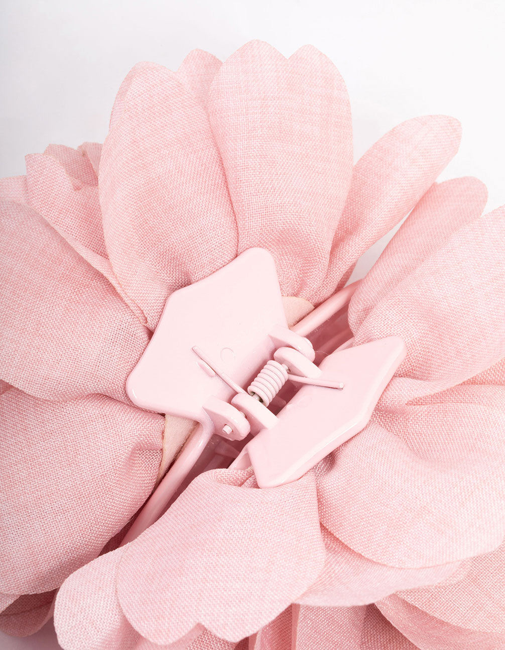 - This Blush Fabric Large Rose Hair Claw features a charming fabric rose design, perfect for adding a botanical touch to your hairstyle.