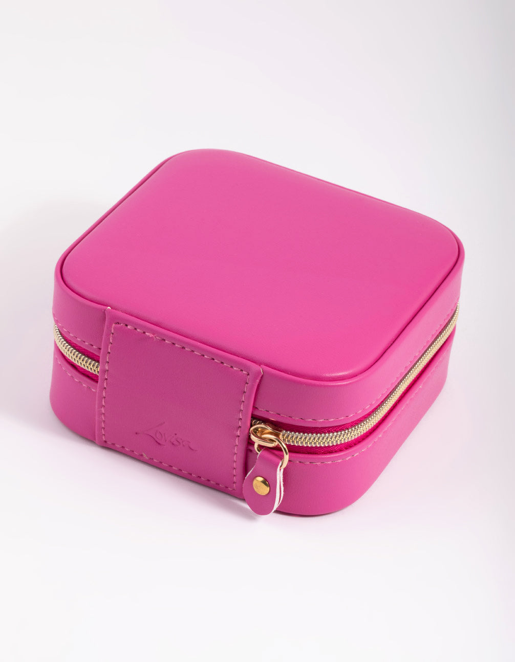 Hot Pink Faux Leather Compact Square Jewellery Box