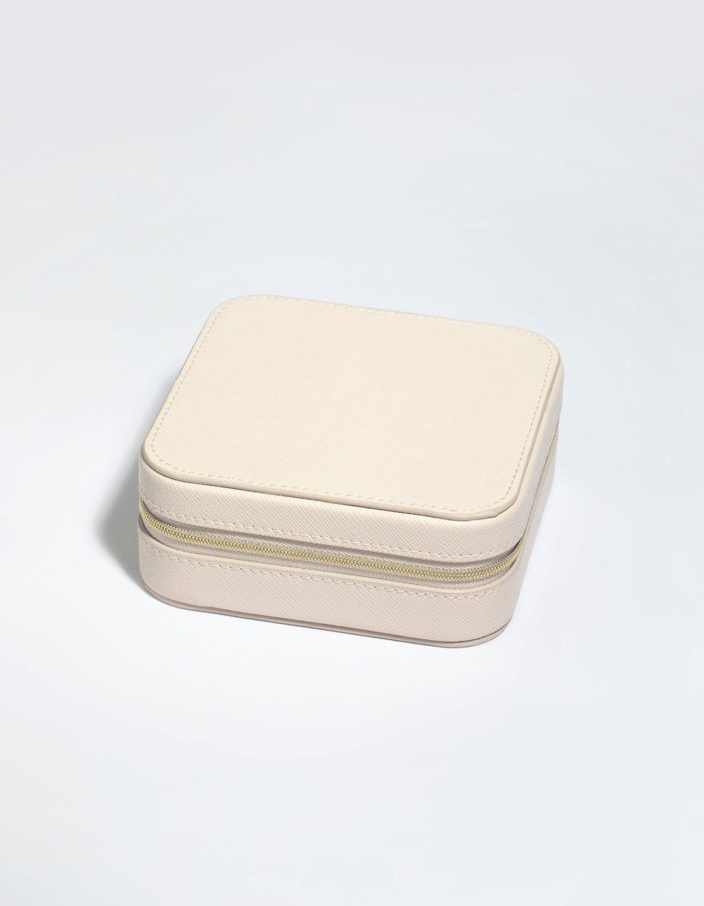Cream Faux Leather Compact Square Jewellery Box