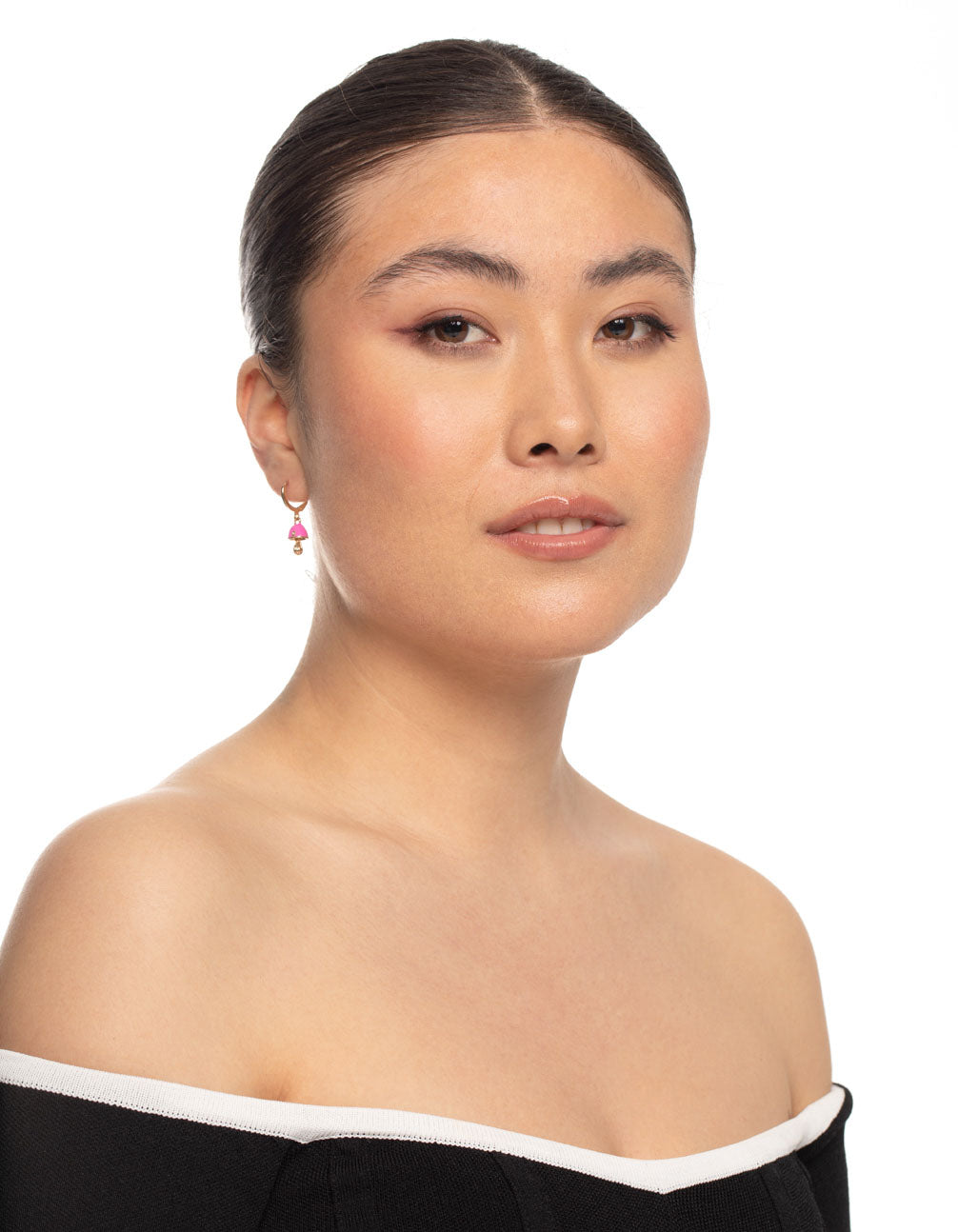• Gold Neon Pink Mushroom Huggie Earrings - link has visual effect only