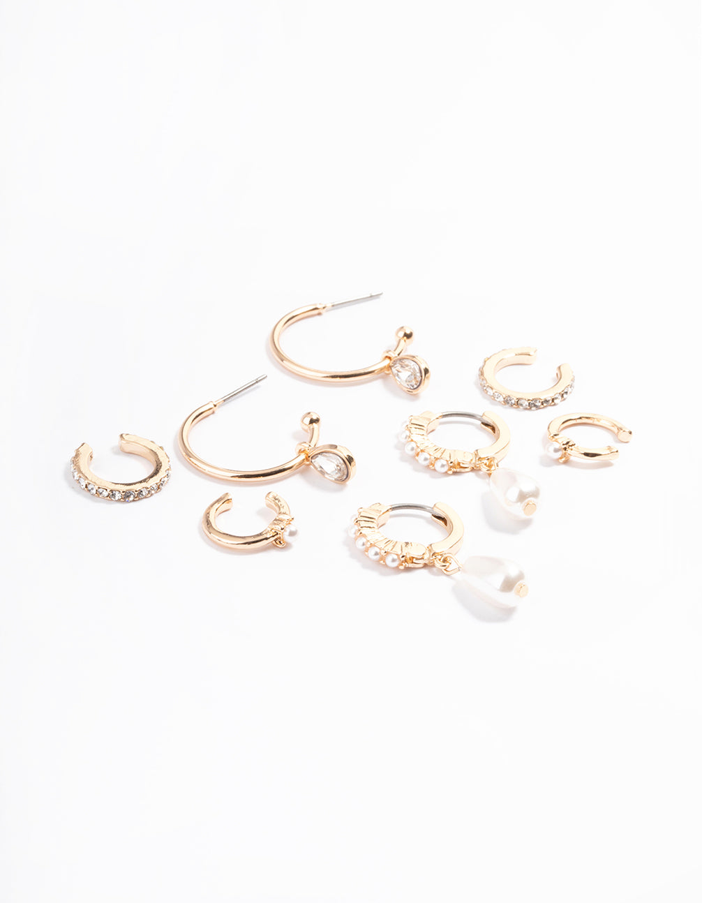 Gold Pearl Diamante Cuff & Hoop Earring Pack