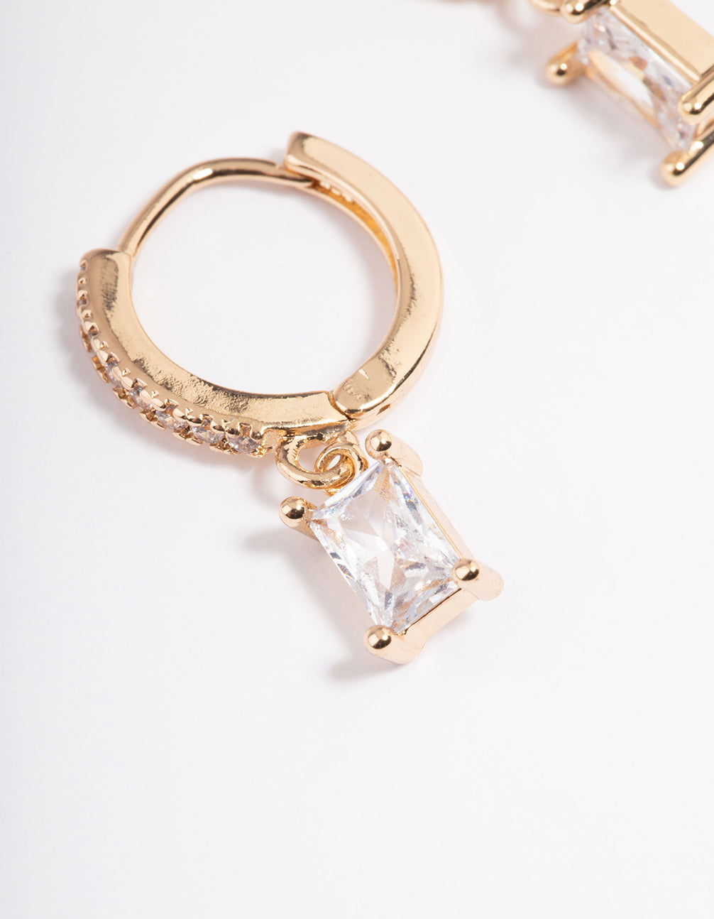 Gold Rectangle Cubic Zirconia Huggie Earrings