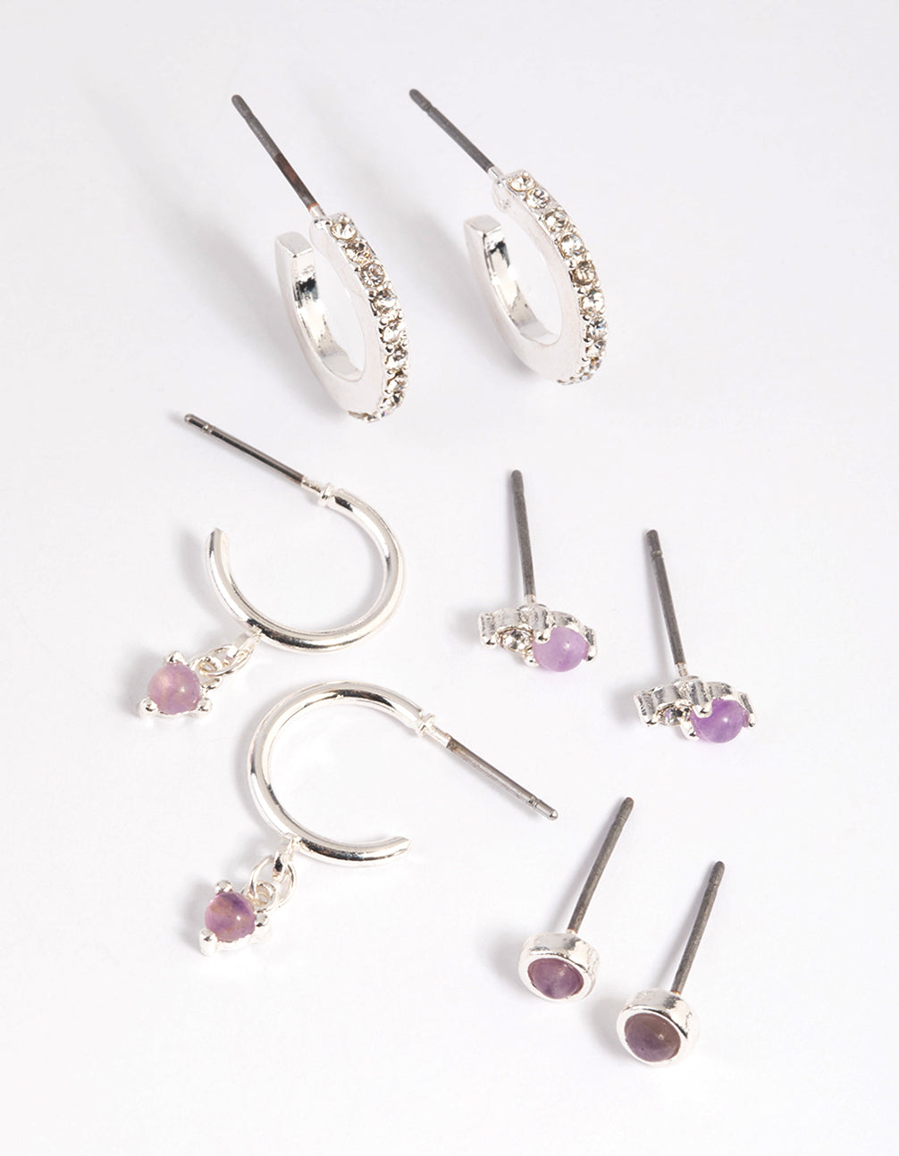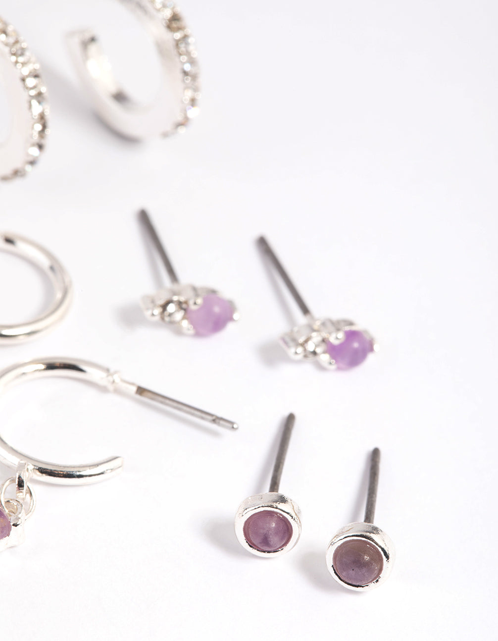 Purple Amethyst Diamante Earring Stack Pack