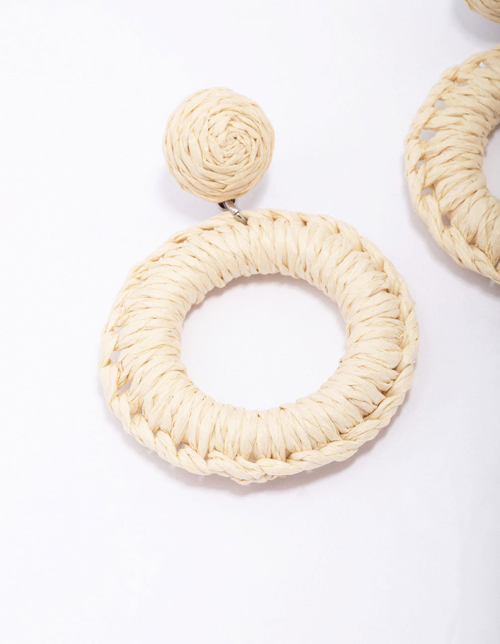 Cream Raffia Wrapped Circle Drop Earrings Cream Raffia Wrapped Circle Drop Earrings Cream Raffia Wrapped Circle Drop Earrings