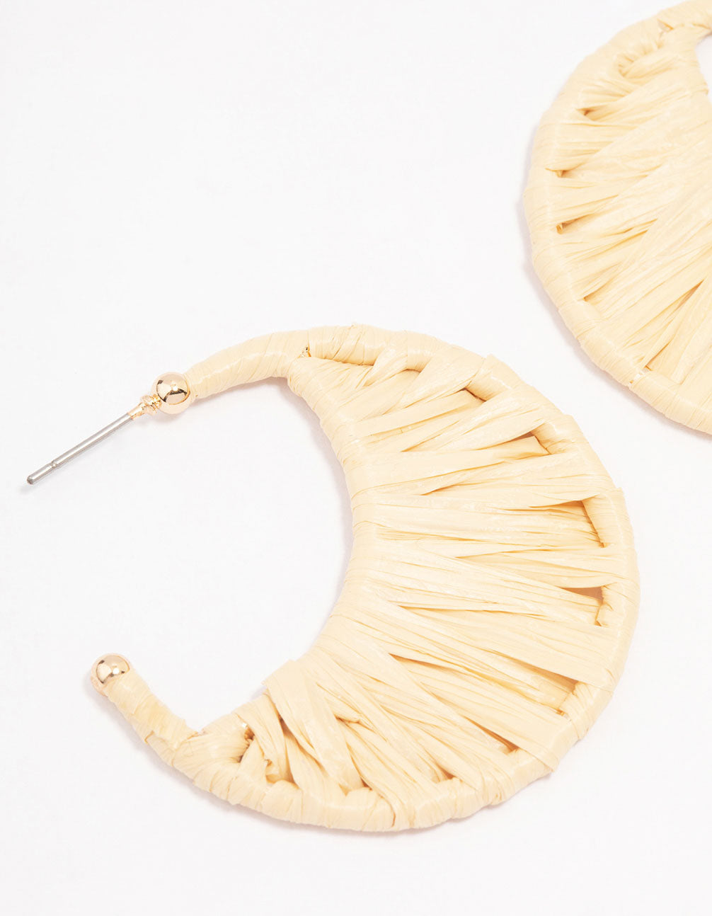 Cream Woven Raffia Crescent Hoop Earrings