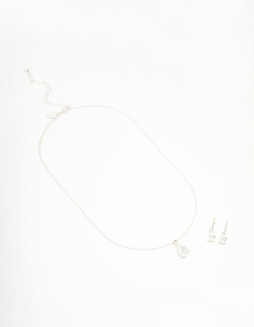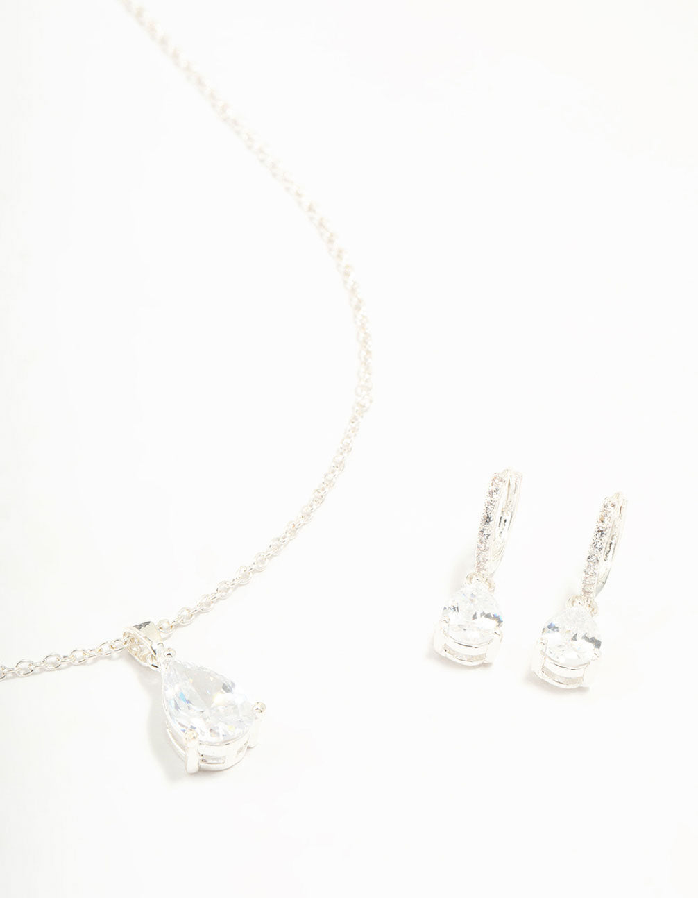 Silver Plated Cubic Zirconia Teardrop Necklace & Earrings Set