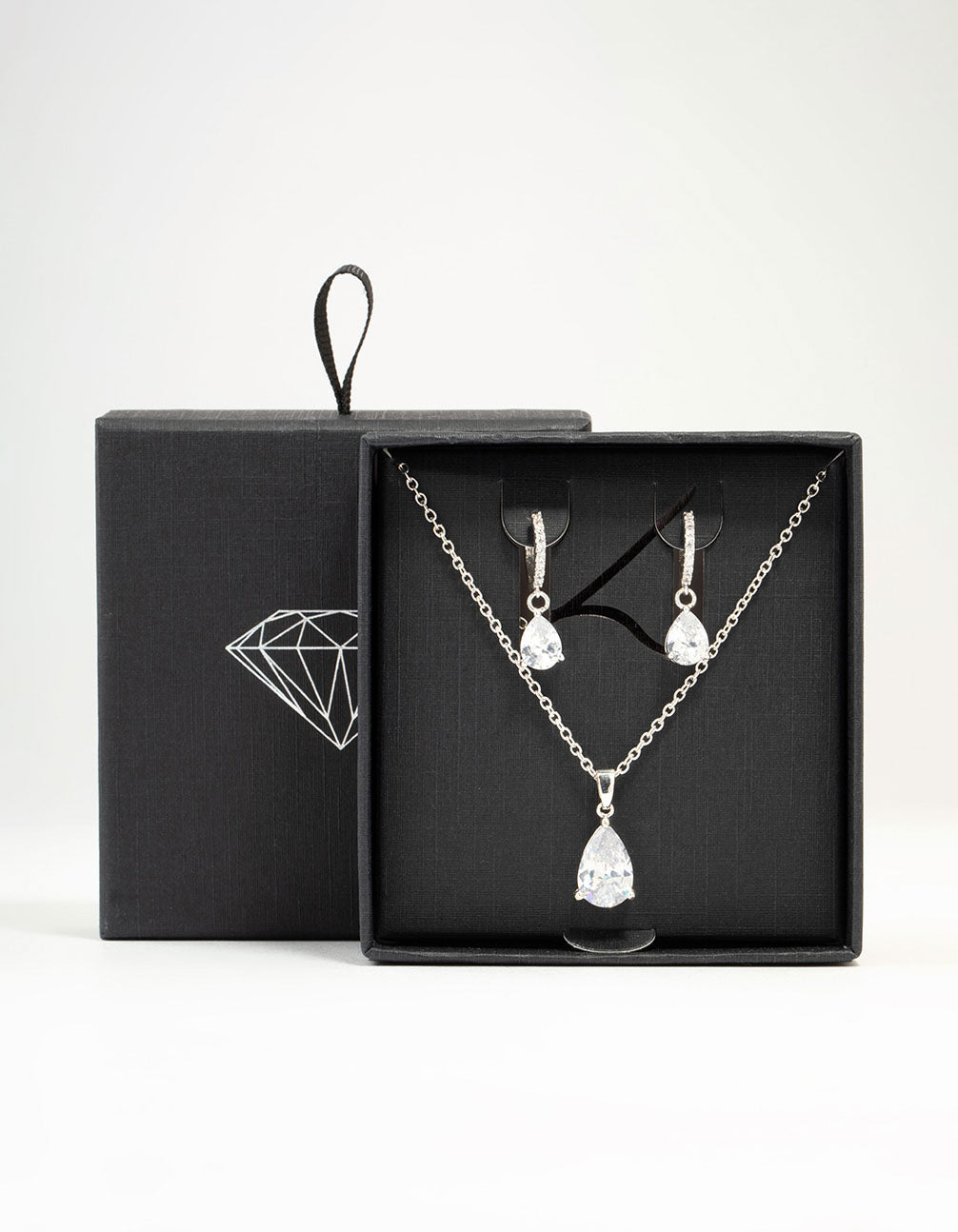 Upgrade your style with this elegant set, featuring a teardrop-shaped cubic zirconia pendant necklace and matching stud earrings. Perfect with a little black dress or to add a touch of glamour to casual outfits.