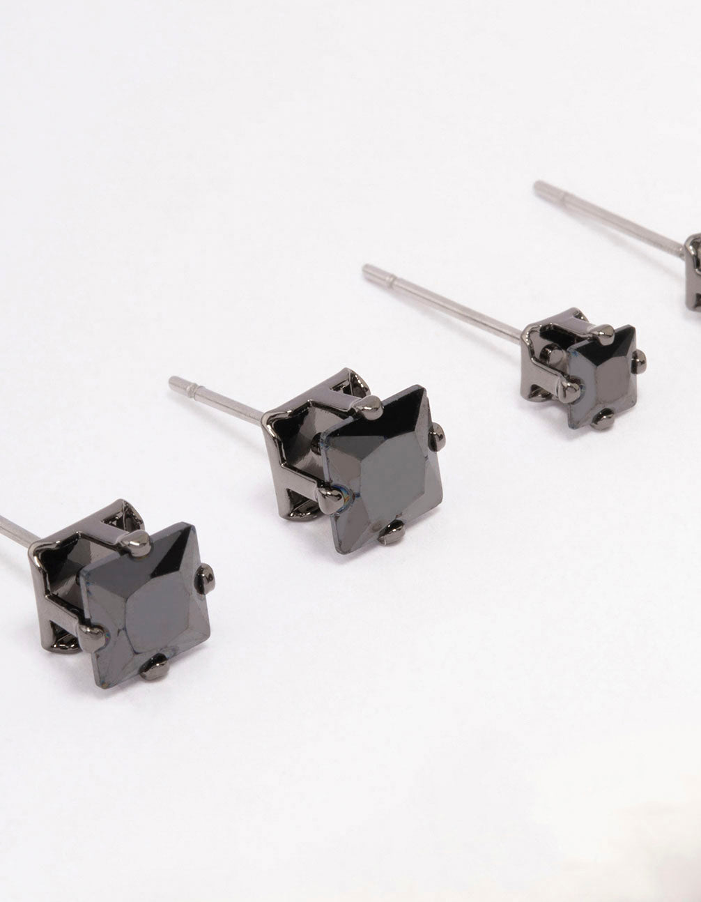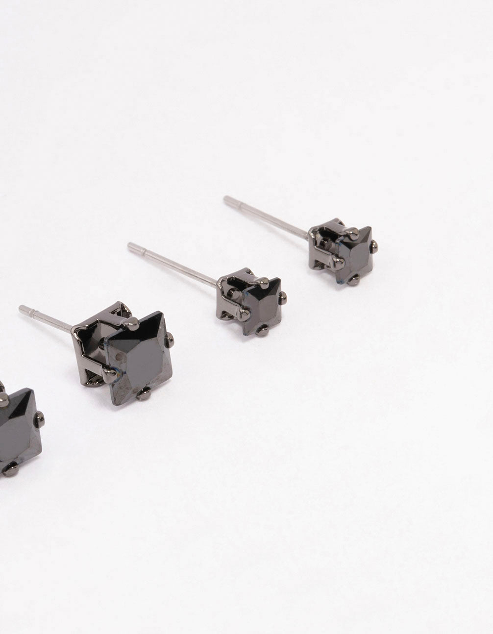 Gunmetal Cubic Zirconia Square Stud Earring Pack