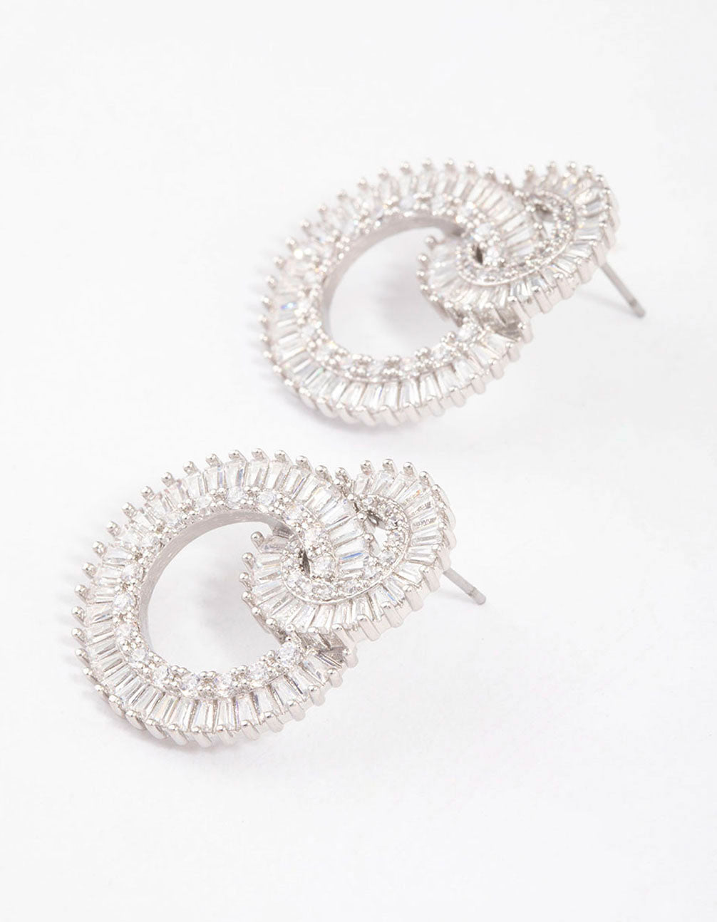 - These drop earrings feature a silver setting with two circular designs, encrusted with delicate diamantes for a stand-out look.
