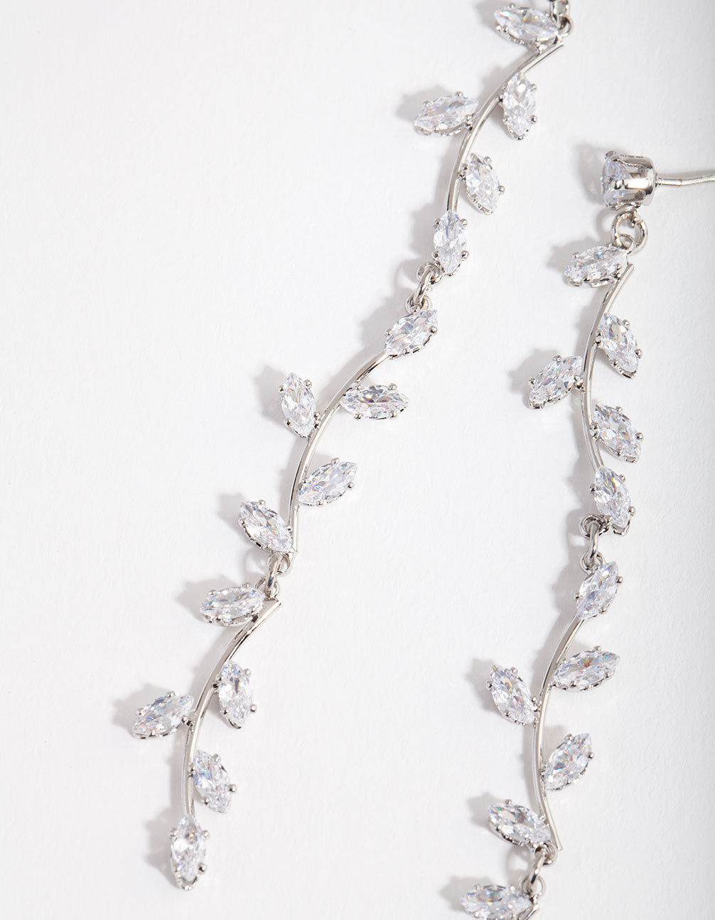 Silver Cubic Zirconia Bendy Vine Drop Earrings