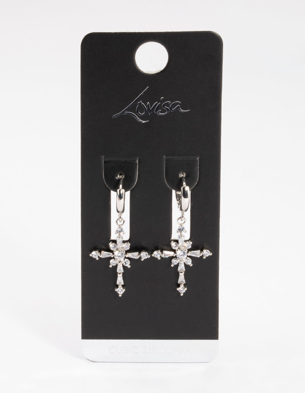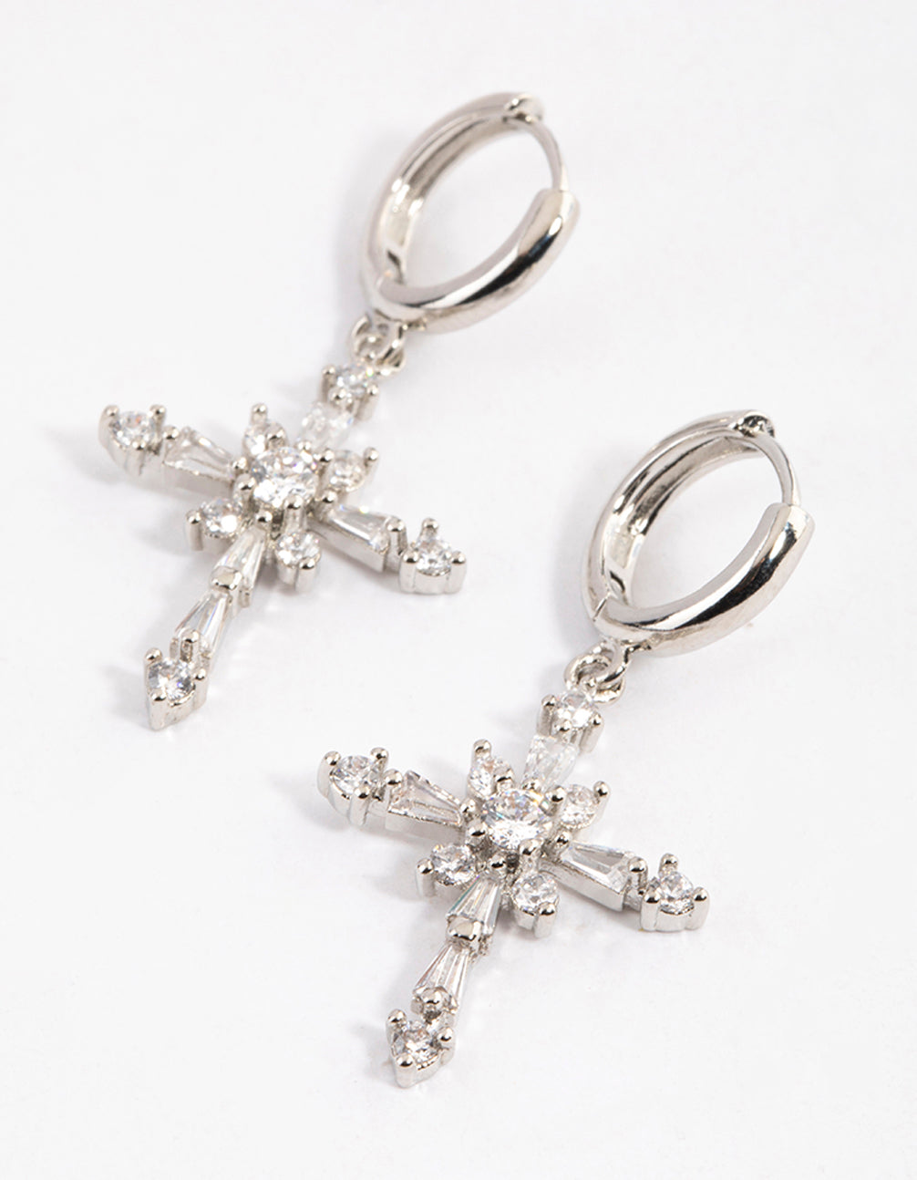 - Add a finishing touch to your look with our Silver Cubic Zirconia Decorated Cross Drop Earrings.