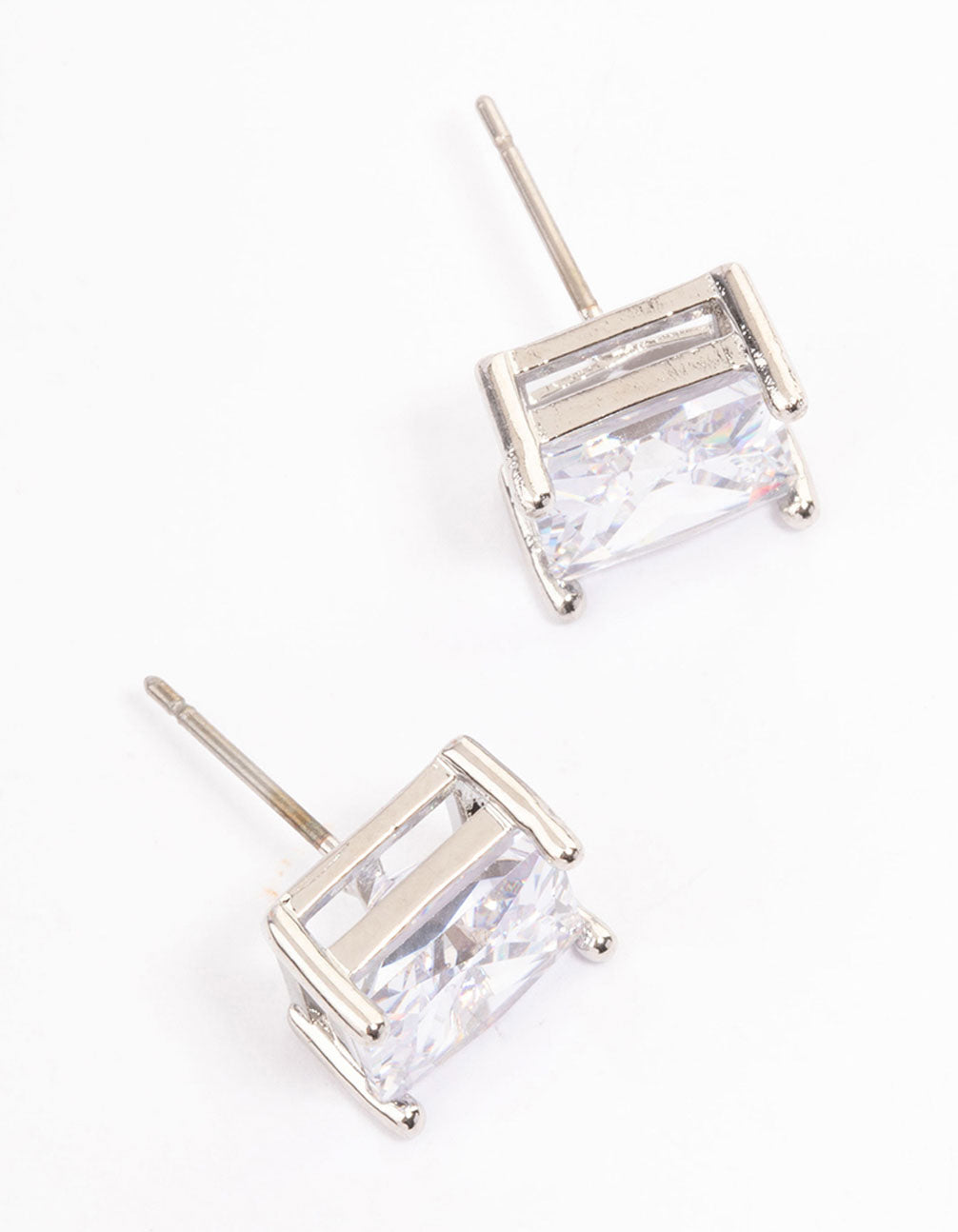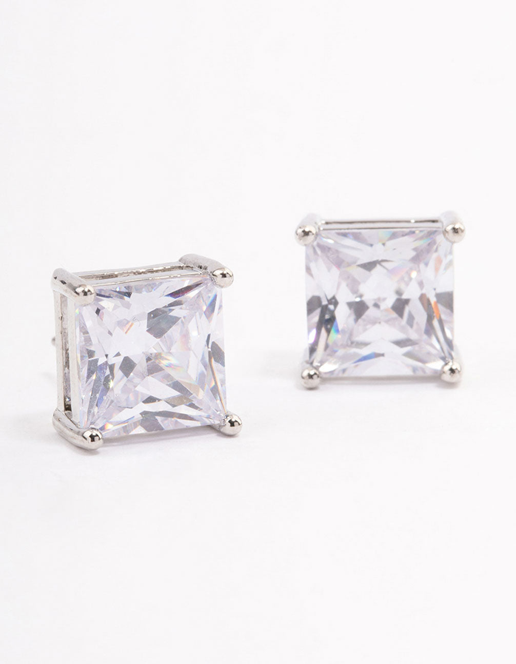Silver Cubic Zirconia Square Statement Stud Earrings