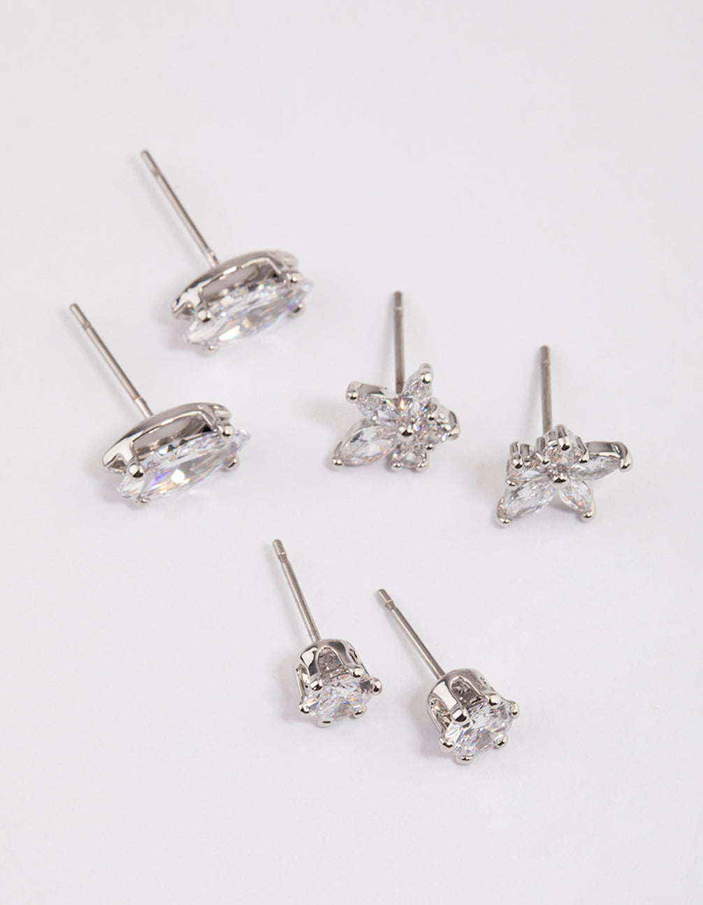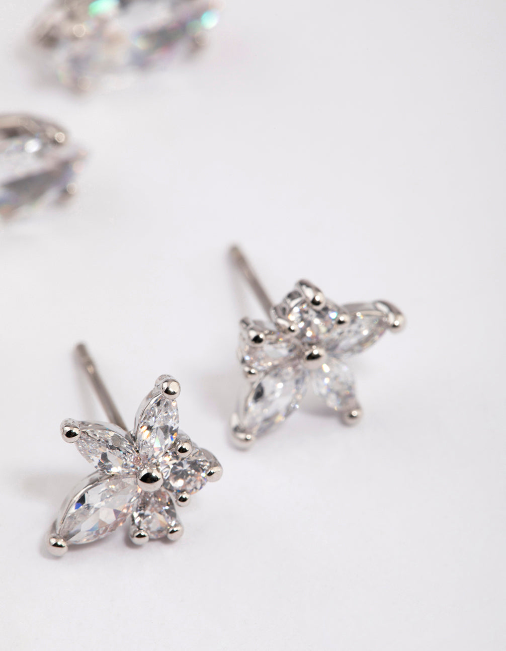Silver Marquise Lotus Cubic Zirconia Earrings Pack