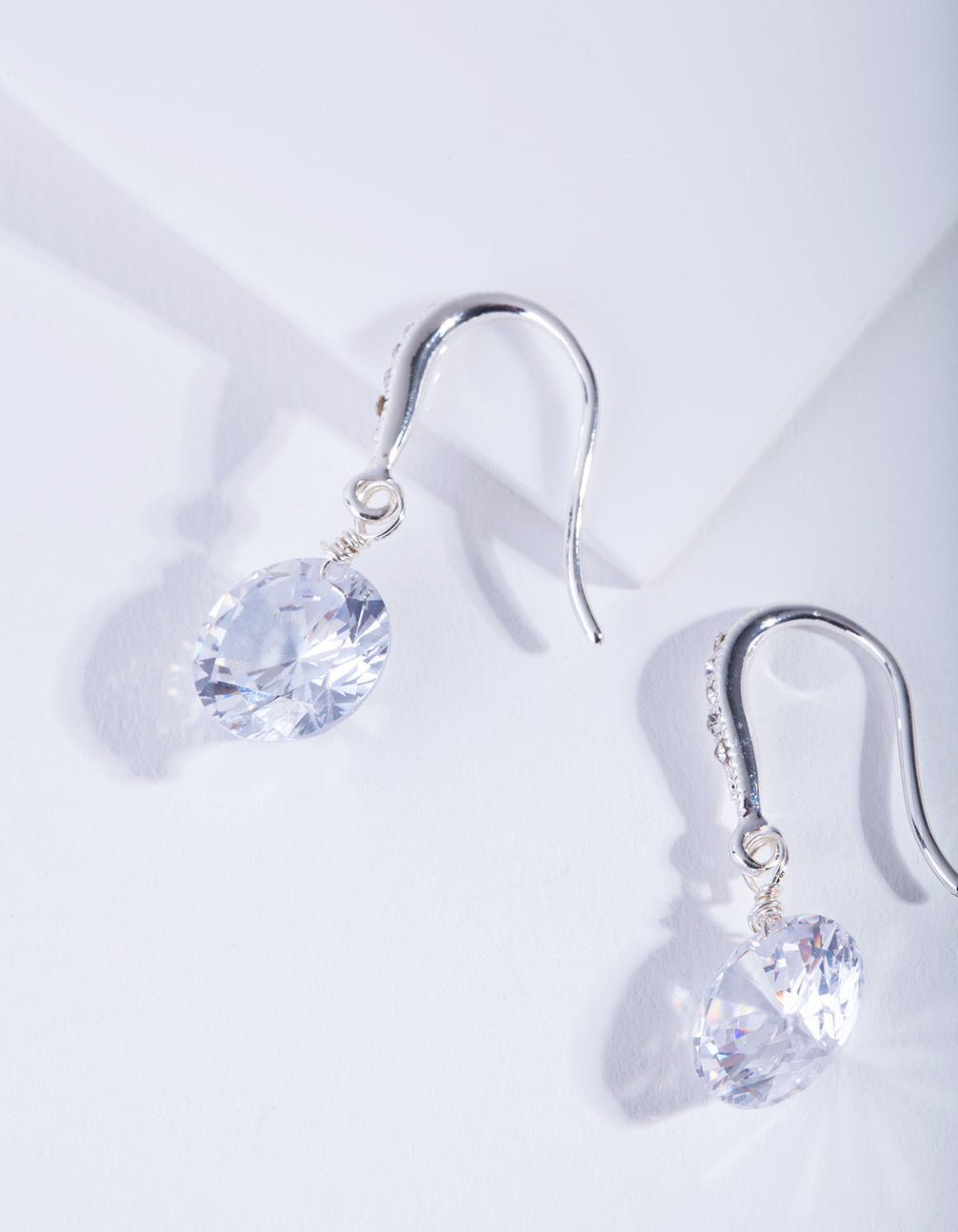 Silver Cubic Zirconia Classic Diamante Drop Earrings