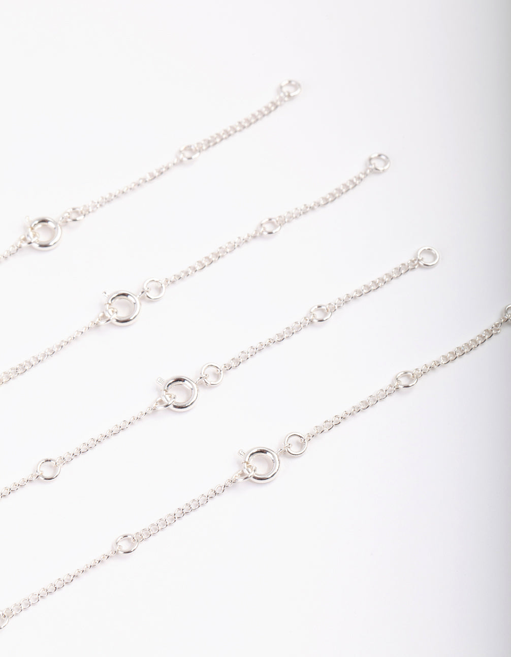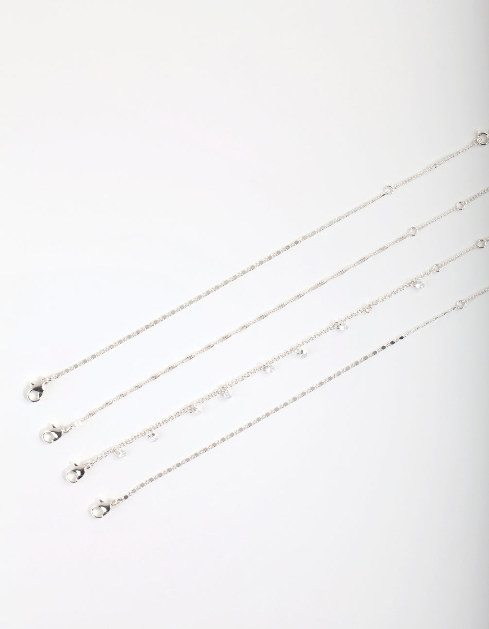 A four pack of anklets/bracelets in a silver-tone. Each item features a different chain with one also boasting dangling cubic zirconia stones.