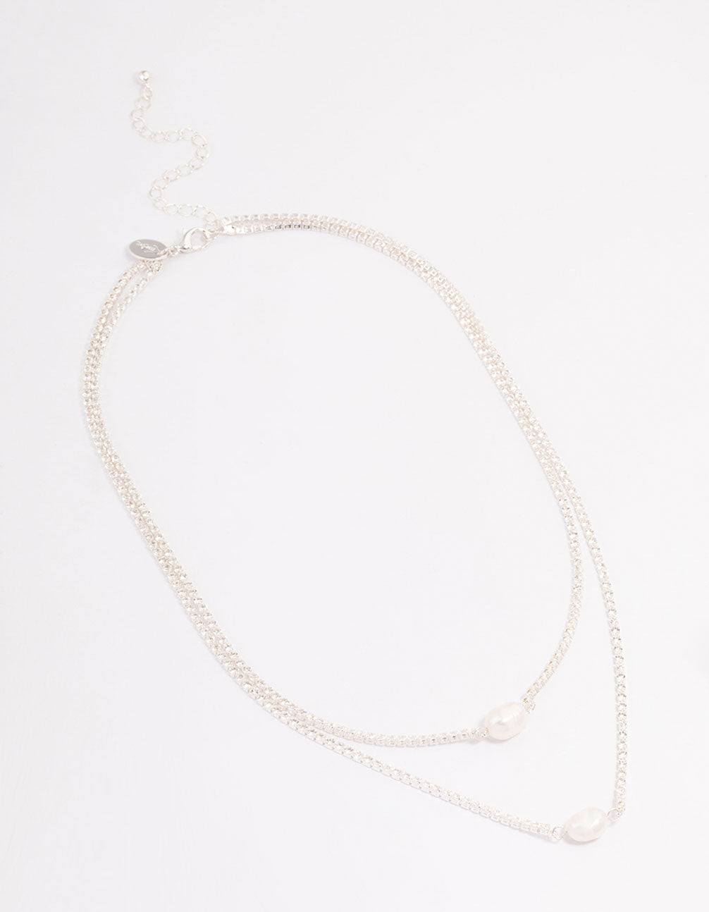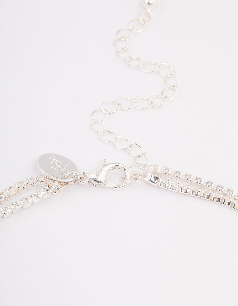 Silver Cubic Zirconia Multi-Row Pearl Necklace