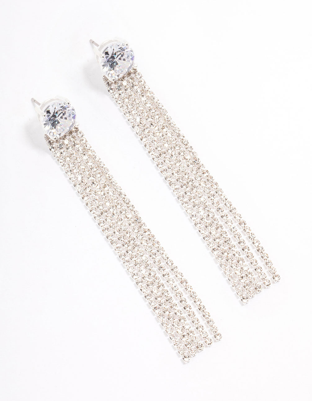 Silver Cubic Zirconia Round Cup Chain Drop Earrings