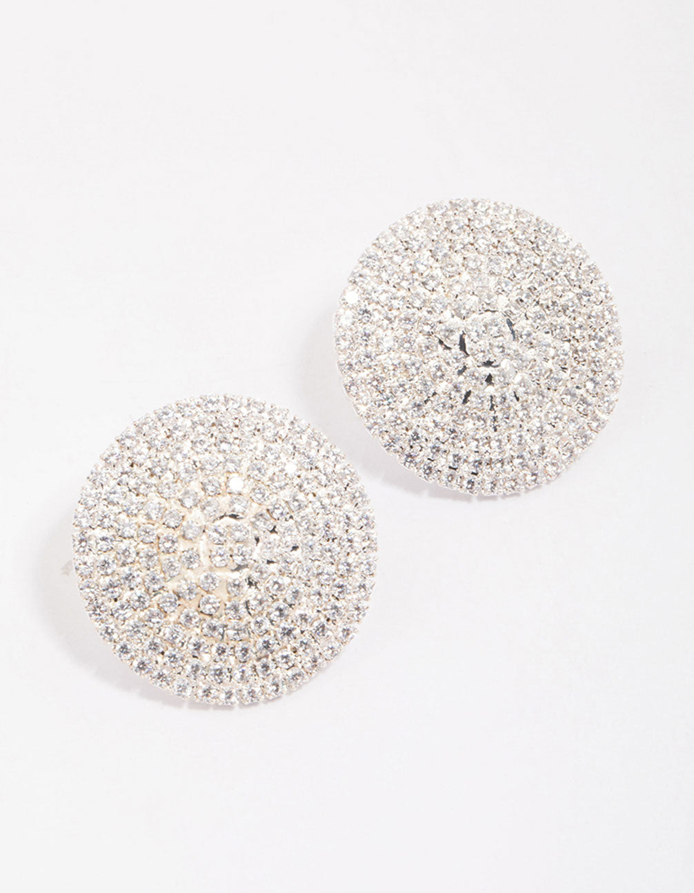 Silver Cubic Zirconia Statement Round Stud Earrings