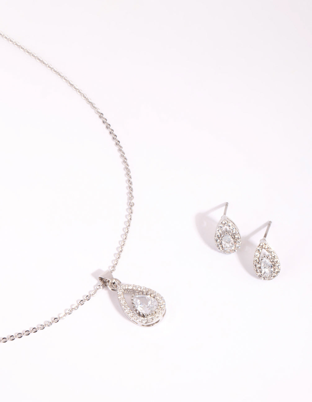 Silver Cubic Zirconia Teardrop Necklace & Earrings Set Silver Cubic Zirconia Teardrop Necklace & Earrings Set Silver Cubic Zirconia Teardrop Necklace & Earrings Set