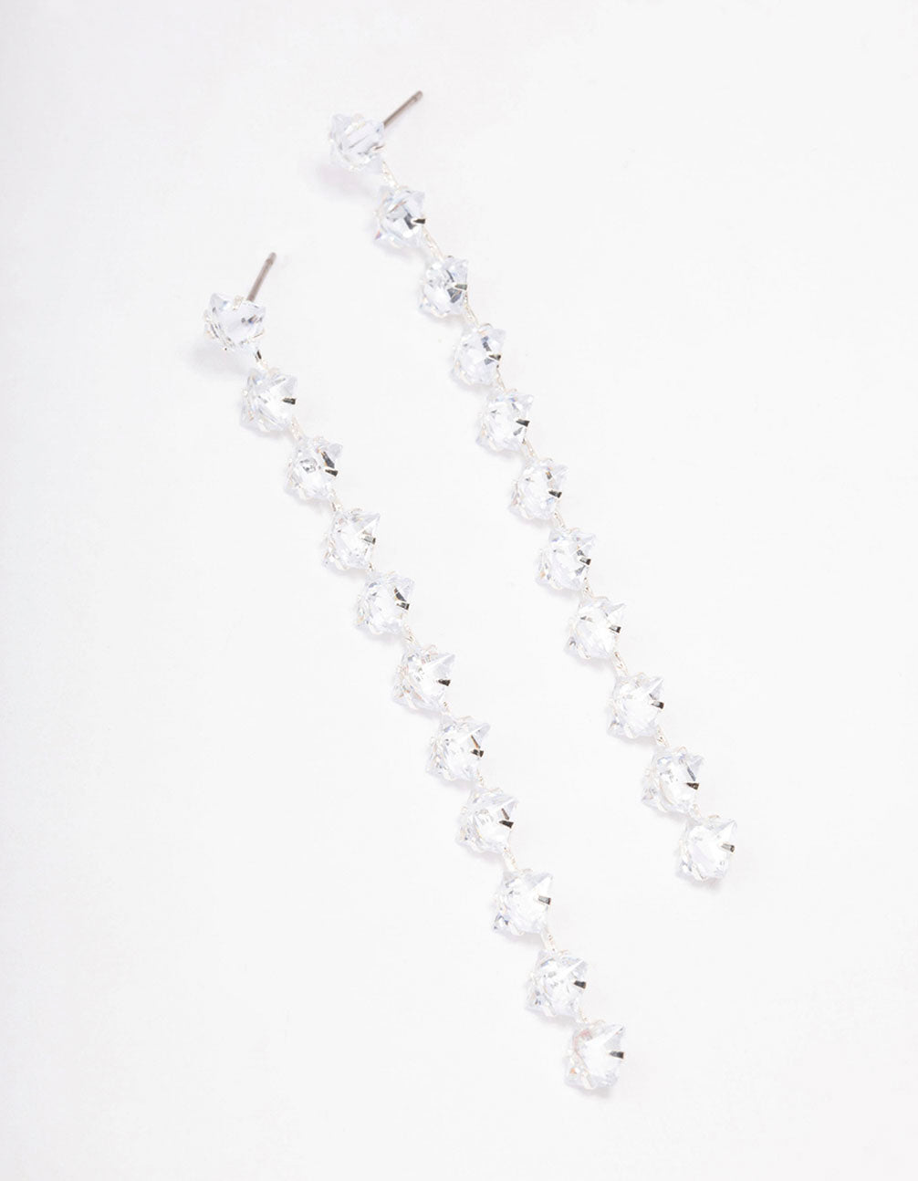 - These dazzling drop earrings feature a stunning silver setting with a collection of crystals for an eye-catching finish.