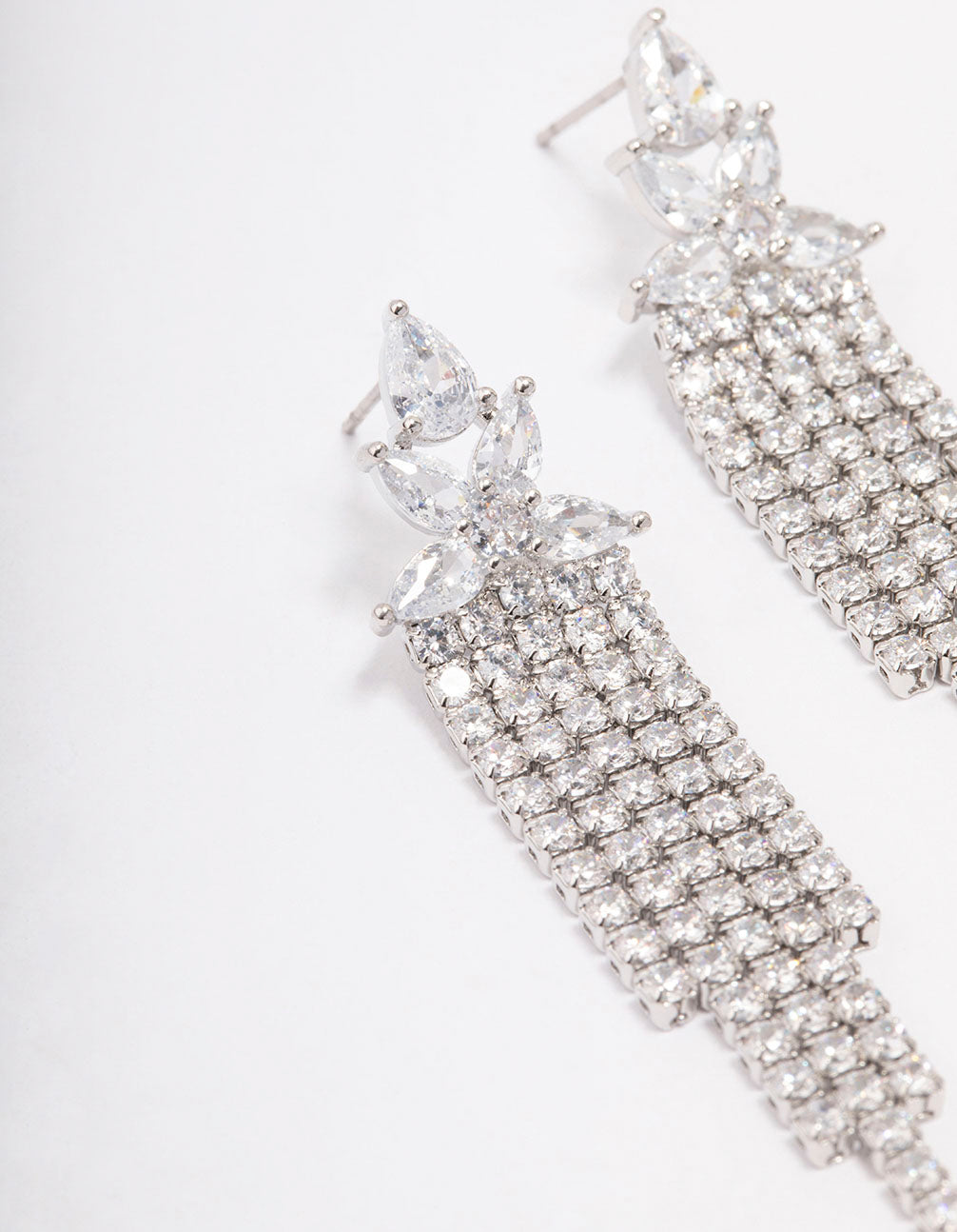 Silver Multi Cubic Zirconia Cup Chain Drop Earrings