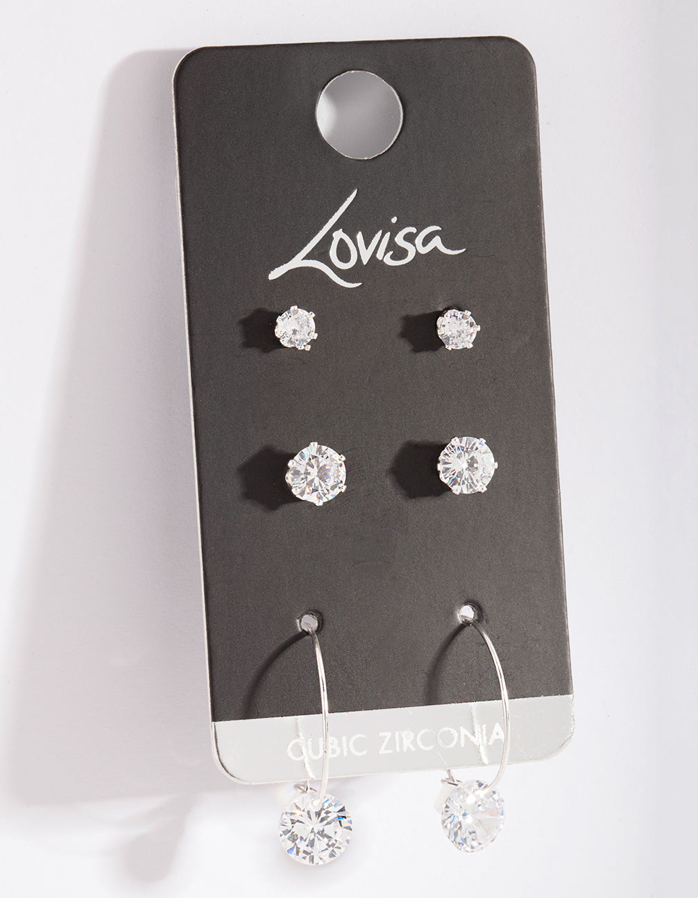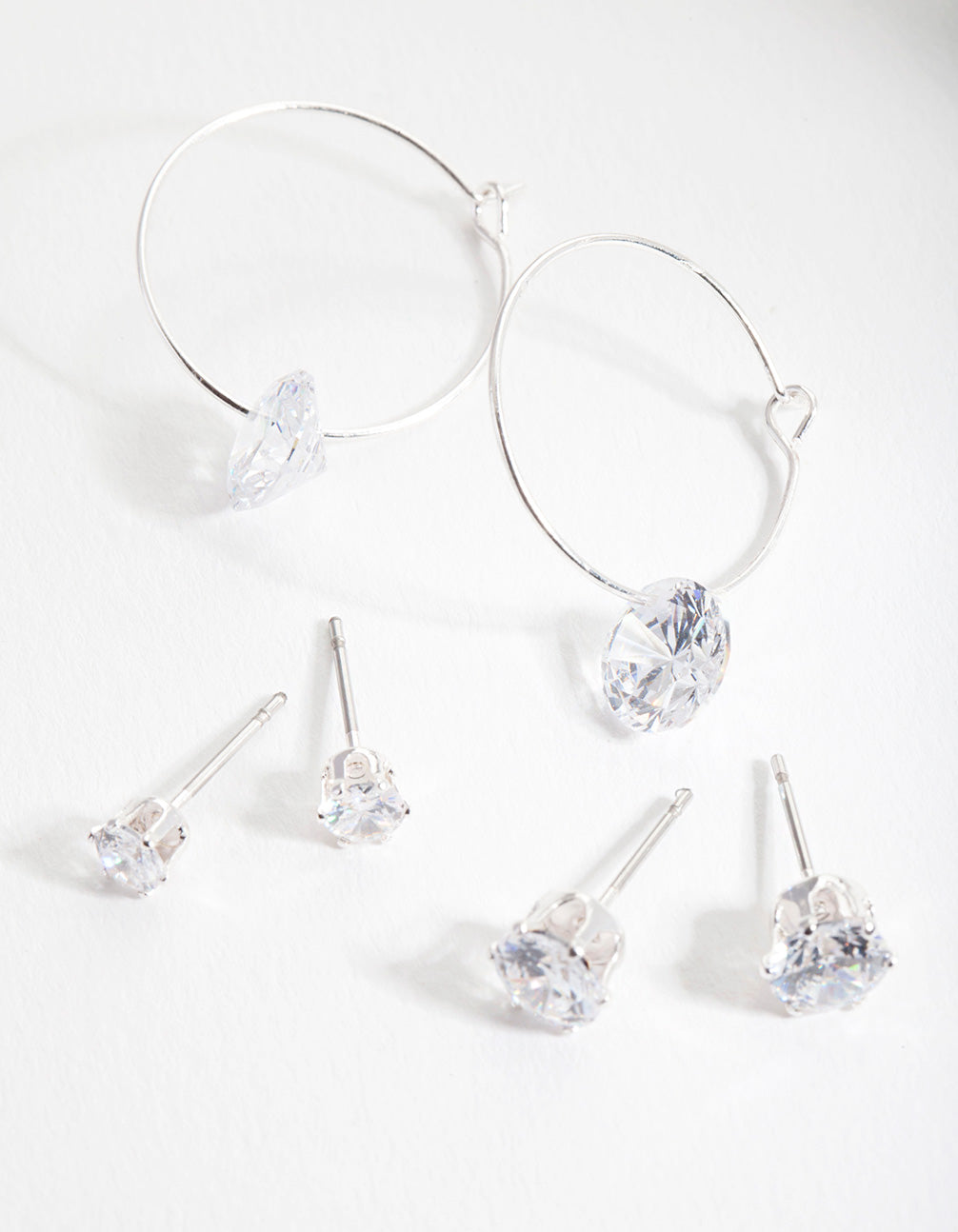 Silver Cubic Zirconia Stud & Hoop Diamante Earring Pack