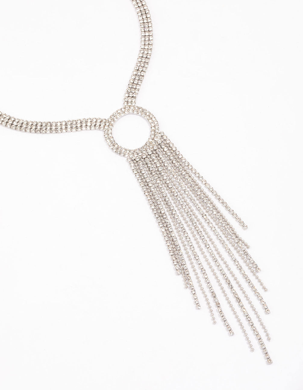 - Style this Silver Diamante Tassel Long Y-Necklace with a set of cupchain diamante earrings for a stand-out finish.