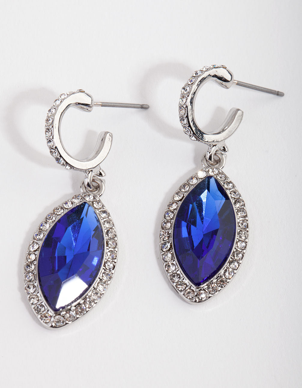 Make a statement with a pair of show-stopping fashion earrings. This pair features a silver-toned blue navette stone drop design.