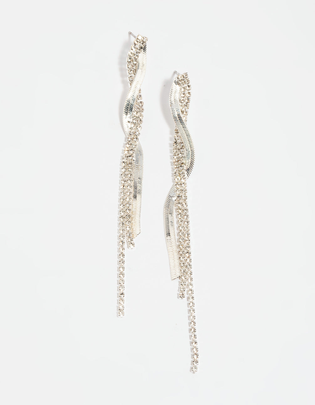 Silver Snake Diamante Drop Earrings