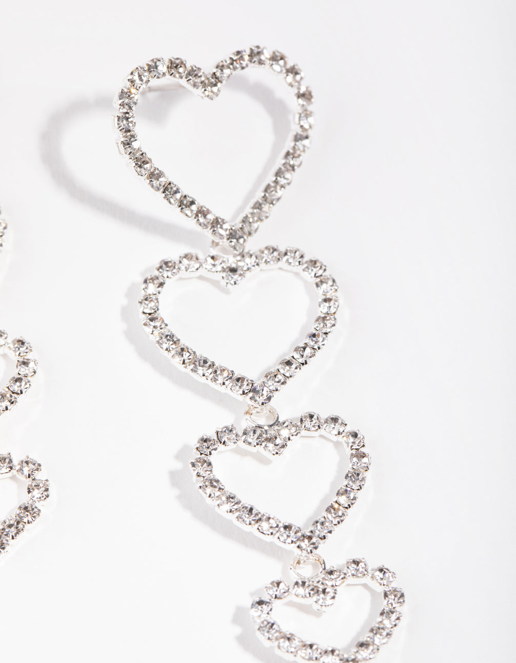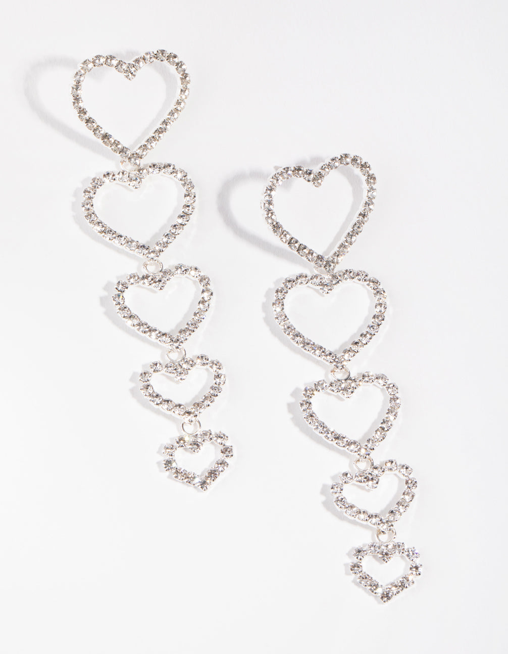 Perfect for date night, these heart drop earrings are designed to turn heads. In a silver-toned setting, these earrings feature descending heart pendants that are covered in sparkling diamantes. Pair these with an evening dress for the ultimate luxe look!